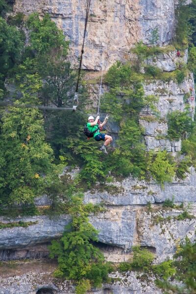 В финале маршрута участников ожидает «полет над пропастью», а точнее тросовая скоростная переправа (троллей) длиной в 300м над ущельем.Продолжительность: 4-5 часов, возраст участия: от 14 лет. До достижения 18 лет строго в сопровождении родителей. СтоимостьОт 5000 ₽Информация от 17 августа 2025