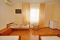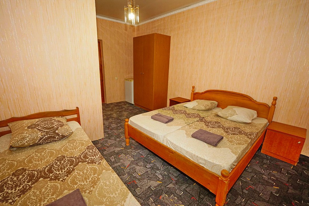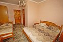 Номер оснащен всем необходимым: шкаф, стулья, тумбочки, вешалка. Размещение на односпальных кроватях или двуспальной кровати и две односпальные.
