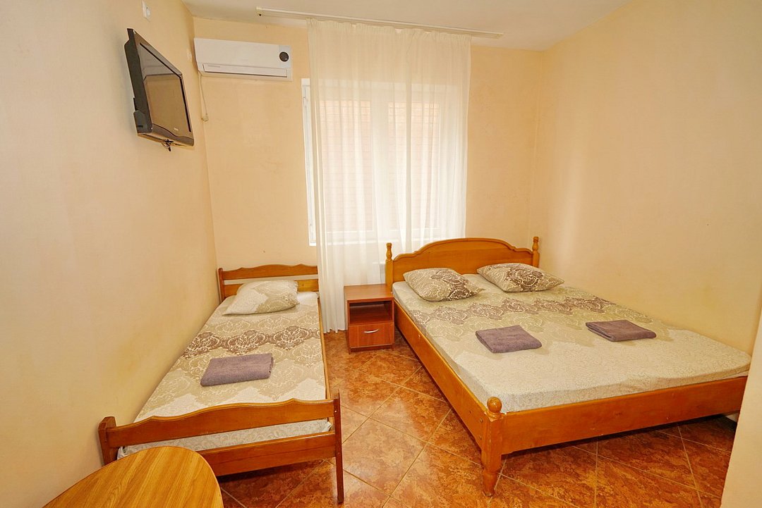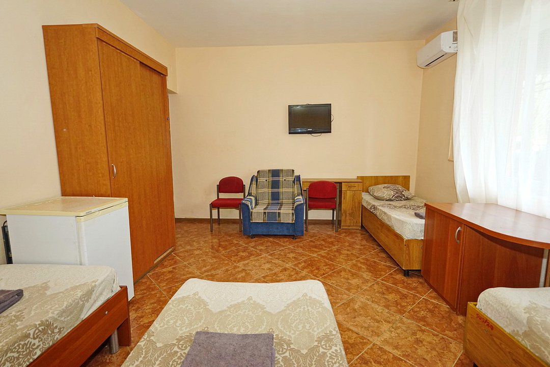 В номере есть телевизор с цифровым ТВ, холодильник и кондиционер. Душ и санузел общие, расположены на этаже.