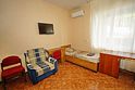 Номер оснащен всем необходимым: шкаф, стулья, тумбочки, вешалка. Размещение на односпальных кроватях или двуспальной кровати и односпальная кровать и кресло-кровать.