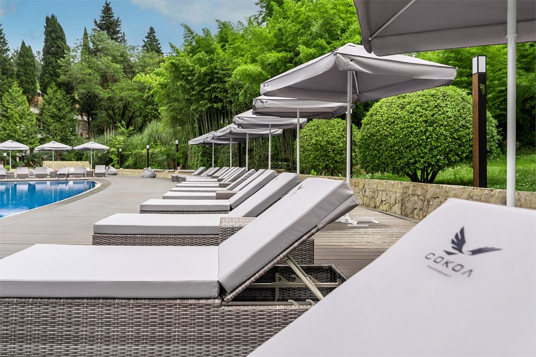 Гостей ждёт множество возможностей для активного отдыха и досуга. Просторный открытый бассейн с подогревом работает круглый год, а фреш-бар у его края предлагает освежающие напитки, такие как свежевыжатые соки и лёгкие коктейли из сезонных фруктов. Утренние занятия йогой на свежем воздухе обеспечивают бодрость, а вечерние — дарят гармонию и расслабление.