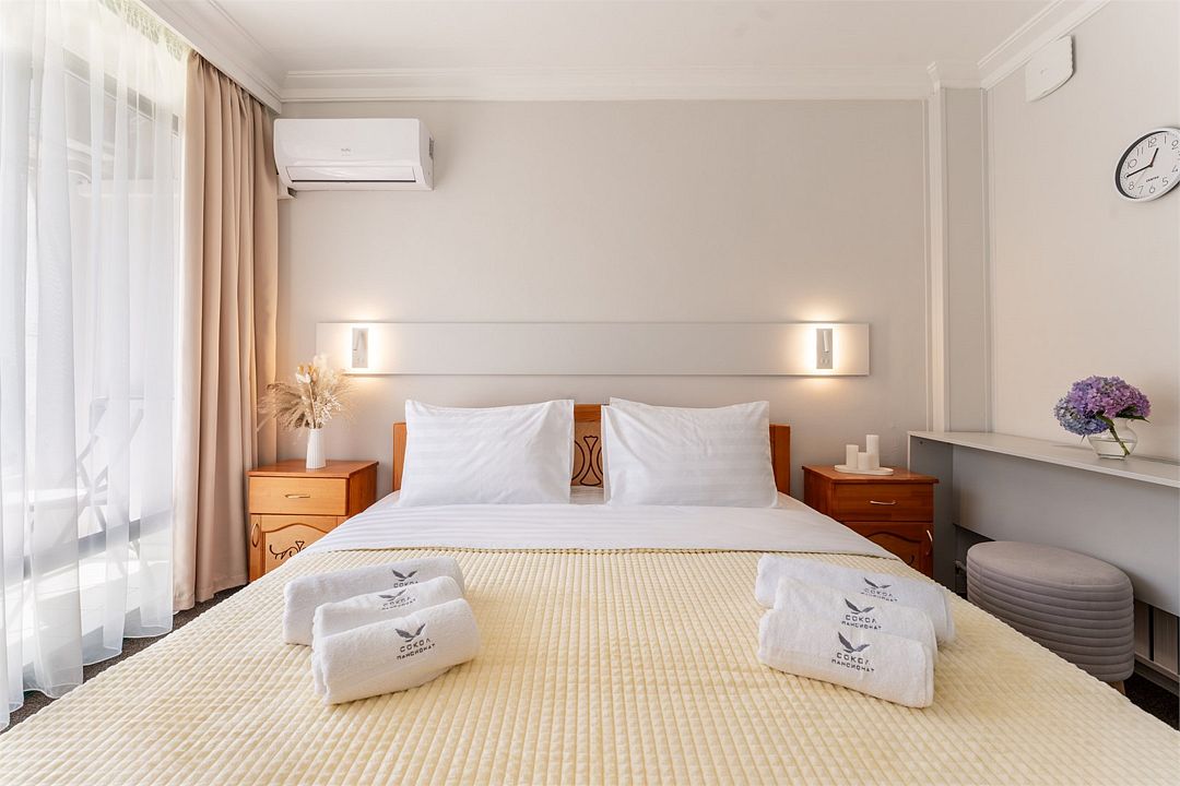 Пансионат «Сокол», расположенный в центре курорта Сочи, предлагает своим гостям уникальное сочетание комфорта и природной красоты. Номера, оснащенные всем необходимым для приятного проживания, утопают в зелени реликтового леса, где кипарисы и экзотические деревья наполняют воздух целебными ароматами, создавая атмосферу уединения и расслабления.
