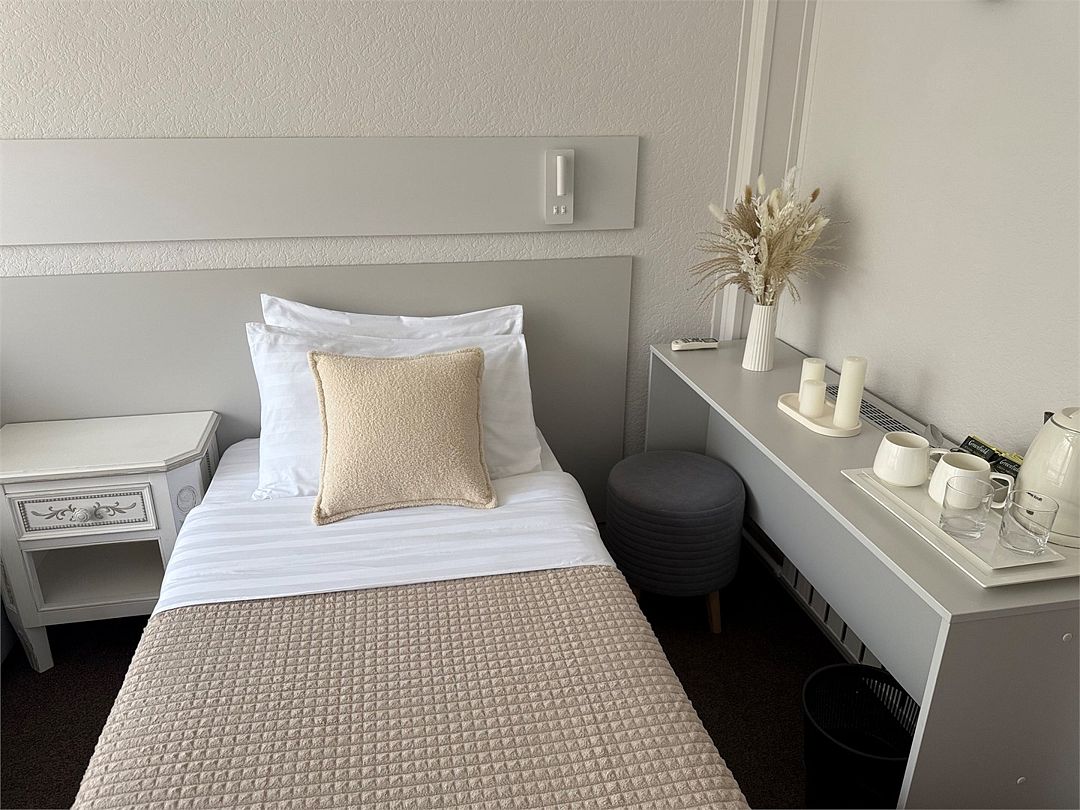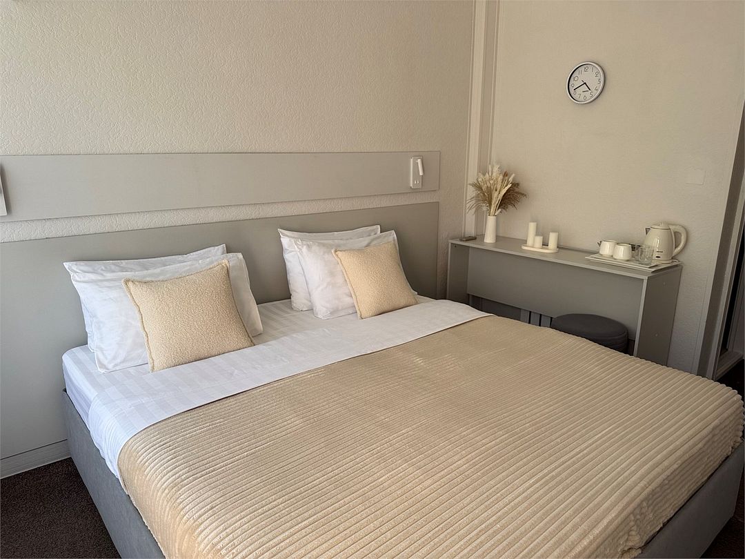 Отличный выбор для тех, кто ценит практичность и удобство. В номере: двуспальная кровать или две односпальные кровати , телевизор, холодильник, фен, чайный набор, а также ванная комната с душем. Спокойная цветовая гамма и ненавязчивый интерьер создают приятную атмосферу для отдыха и восстановления.Услуги и удобства