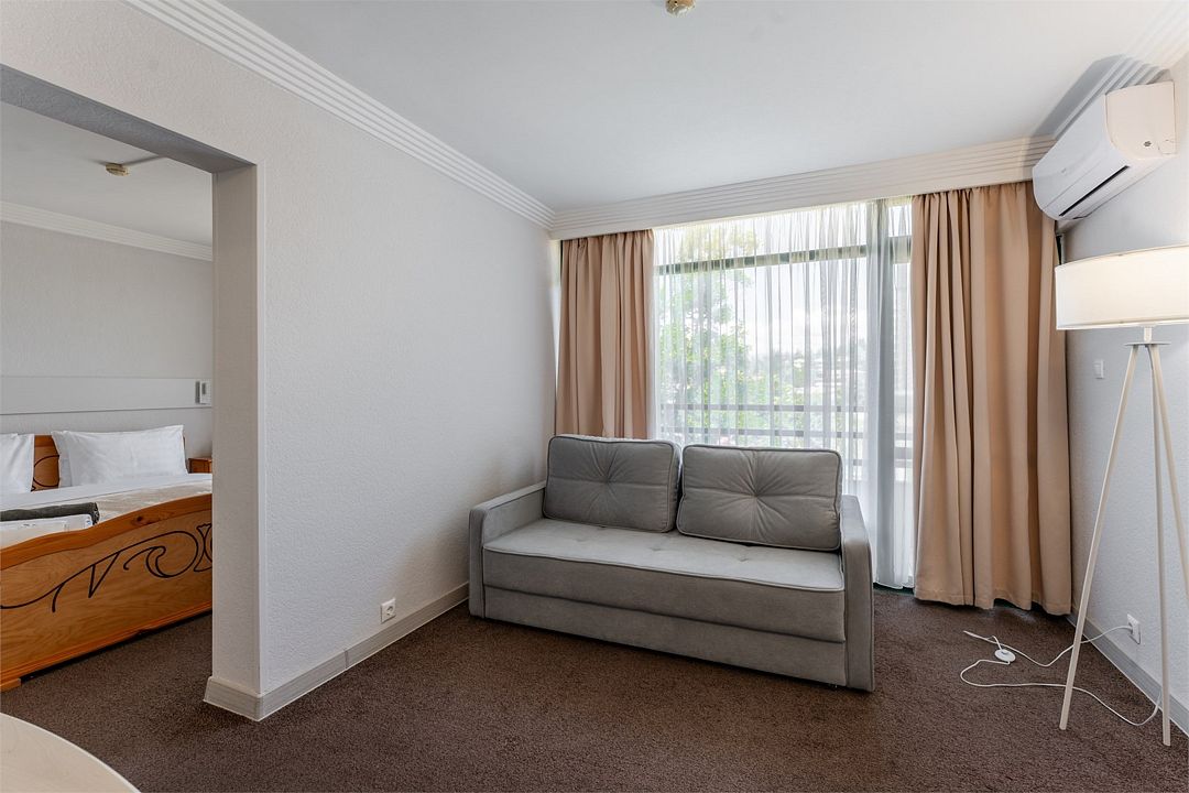 Если вы путешествуете с семьёй или в компании, этот номер станет вашим лучшим выбором. В номере: две спальни с удобными кроватями, просторная гостиная, телевизор, холодильник, фен, чайный набор и ванная комната с душем. Всё продумано для того, чтобы вы могли отдыхать с комфортом и наслаждаться временем вместе.Услуги и удобства