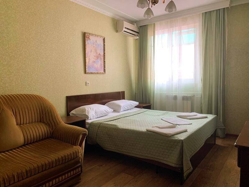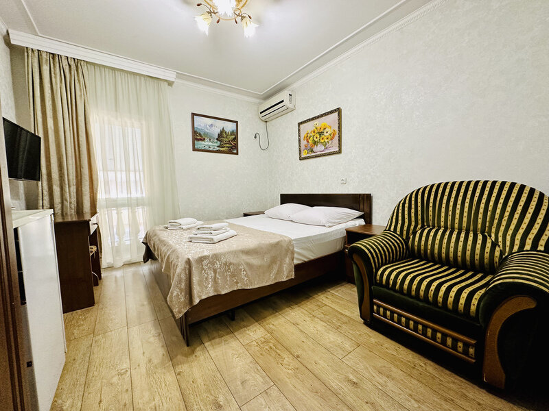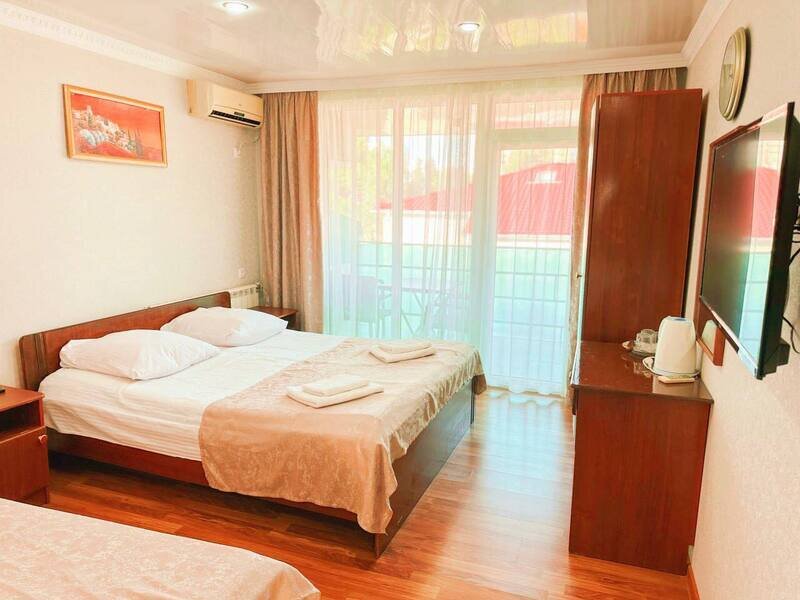 В фонде 25 номеров от двухместных до четырёхместных. Некоторые варианты с выходом на балкон. Из мебели есть спальные кровати, диваны и кресла, а также установлена современная техника.