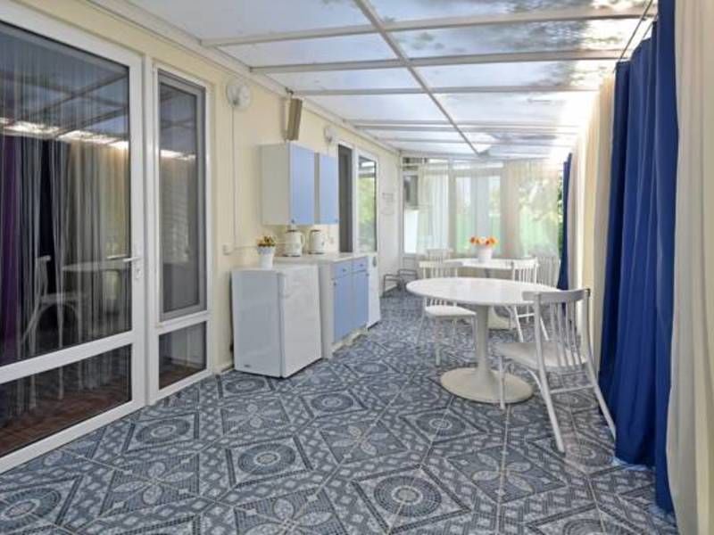 Все номера оборудованы сплит. системой, телевизорами (спутниковое телевидение), холодильниками, электрочайниками, санузлами, мини-кухня (без плиты). Гостям предоставляется пляжные зонты и покрывала, полный комплект полотенец (полотенце для рук, банное полотенце, полотенце для ног, пляжное полотенце). Для проведения торжеств и других мероприятий есть банкетный зал на 30 человек. Имеется оборудованное место для приготовления шашлыка, игры в настольный теннис, прачечная, гладильная, место для стоянки автомобиля.