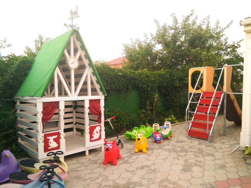 Для самых маленьких гостей есть детская площадка (горка, турник, домик, песочница, самокаты, бибикары, лего и др. игрушки для разного возраста).