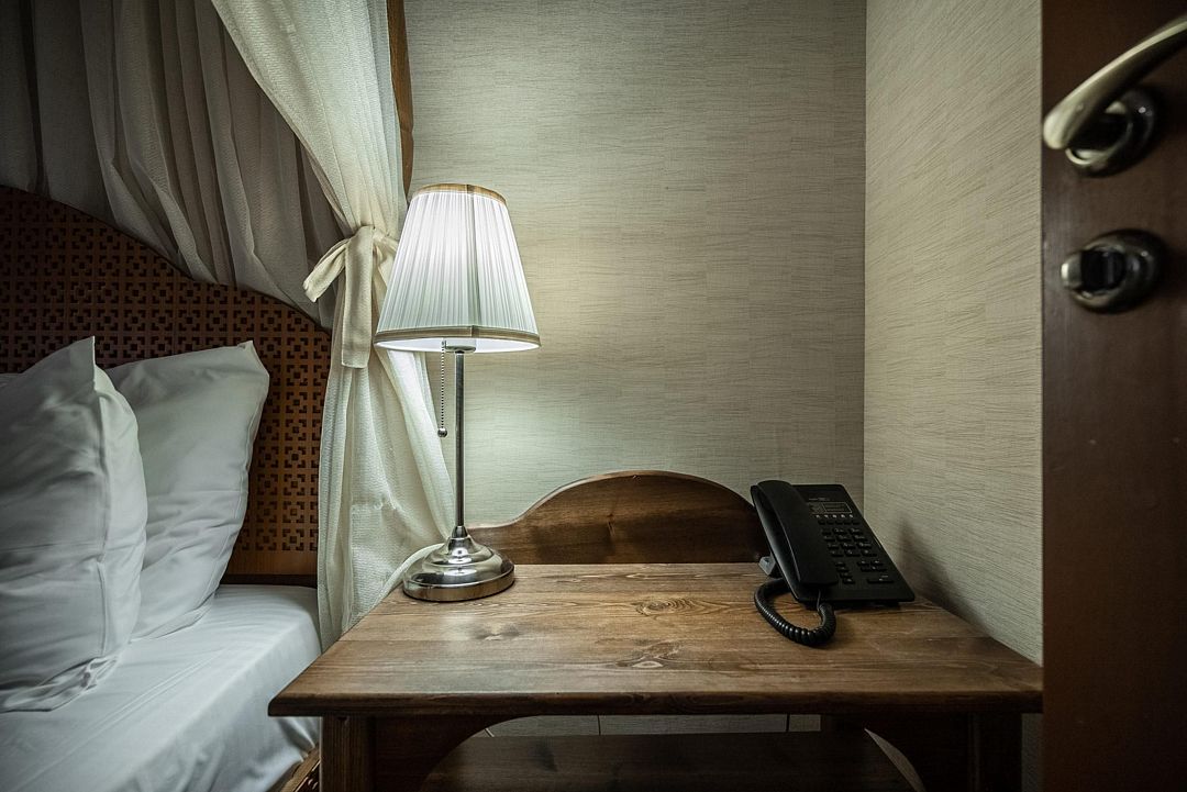 Стандартный номер расположен в главном корпусе. Он позволяет с комфортом разместиться двум гостям. Комната, в которой преобладает отделка под дерево, оборудована всем необходимым для комфортного проживания. Есть возможность выбрать варианты кроватей: 2 односпальные или 1 двуспальная.