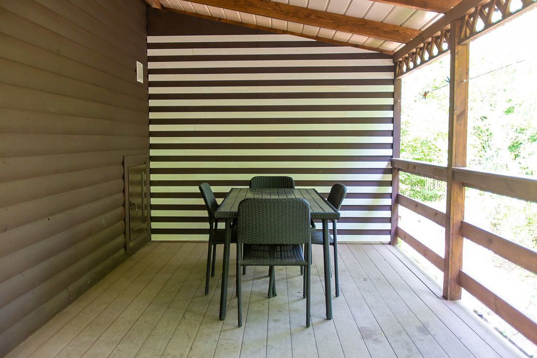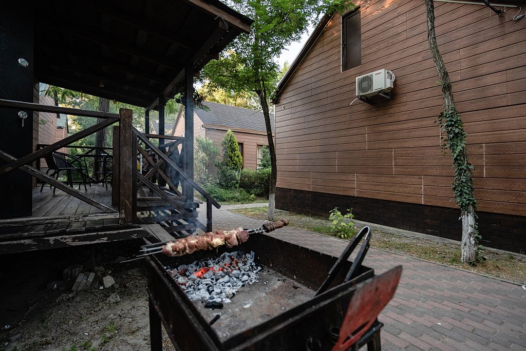 Здесь есть все для комфортного отдыха. В частности, небольшая терраса и собственная зона барбекю, где можно пожарить шашлык на мангале.