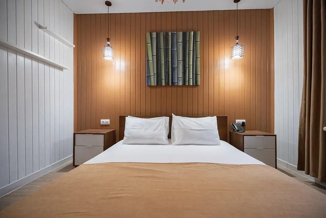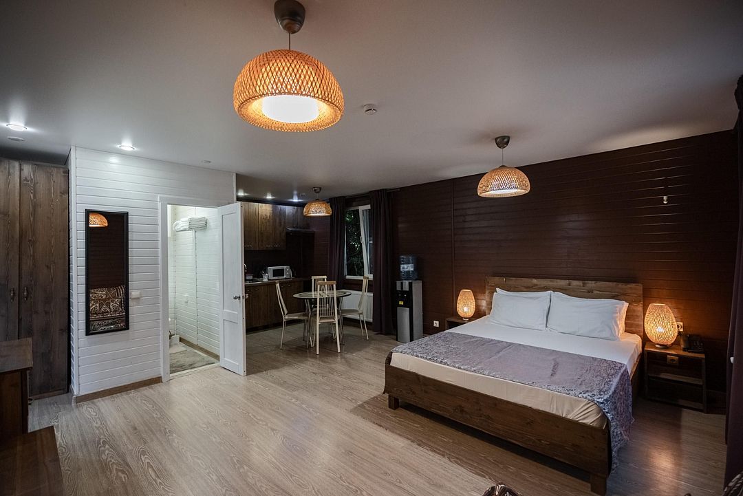 Мечтаете об спокойном, расслабленном отдыхе среди красивой природы? Забронируйте люкс в восточном стиле. Он не только оборудован всем необходимым для вашего комфорта, но и привлекает внимание необычным оформлением.