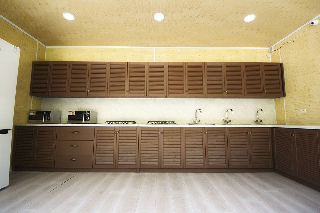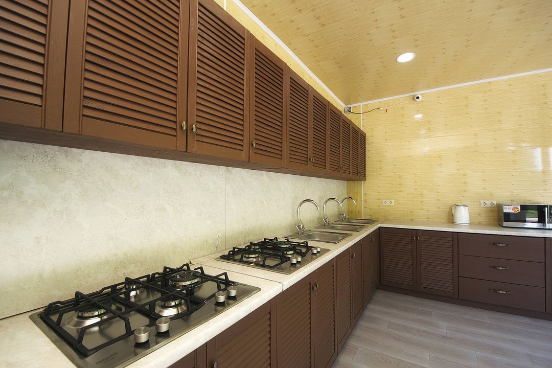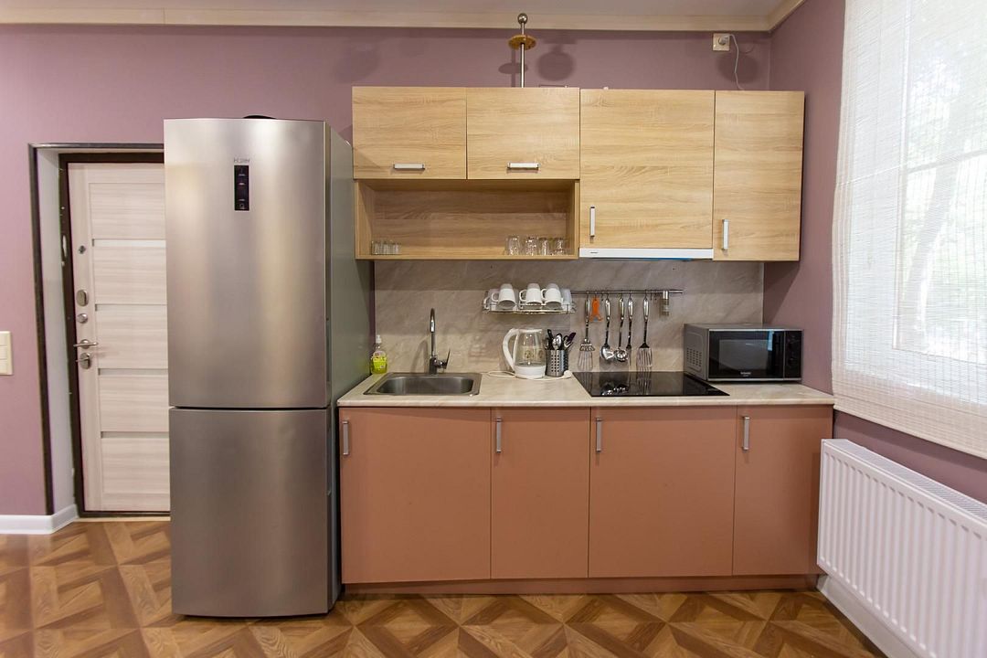 Также, в каждой комнате есть телевизоры с плоским экраном. Кухня оснащена всем, что может потребоваться домашним кулинарам — мультиваркой, электроплитой, электрочайником, микроволновкой и пр.