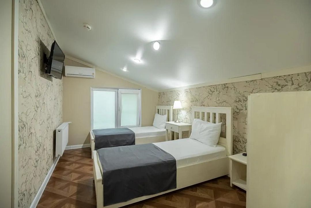 Уютный номер на двоих выдержан в современном стиле. Нейтральные цвета, использованные в оформлении комнаты, располагают к беззаботному отдыху на берегу моря. Удобная двуспальная кровать или 2 односпальные - на выбор, гарантируют крепкий сон, а наличие Wi-Fi позволяет делиться яркими фото в соцсетях и общаться с близкими.