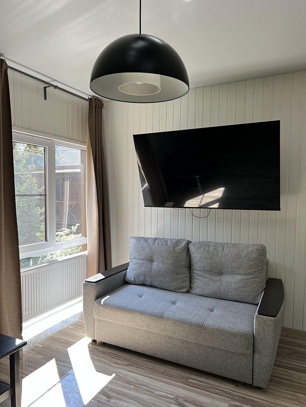Уютный светлый номер на троих идеально подходит для небольшой семьи или компании. Выполненный в эко-стиле, он сделает ваше прибывание в Дивноморском комфортным и ярким.