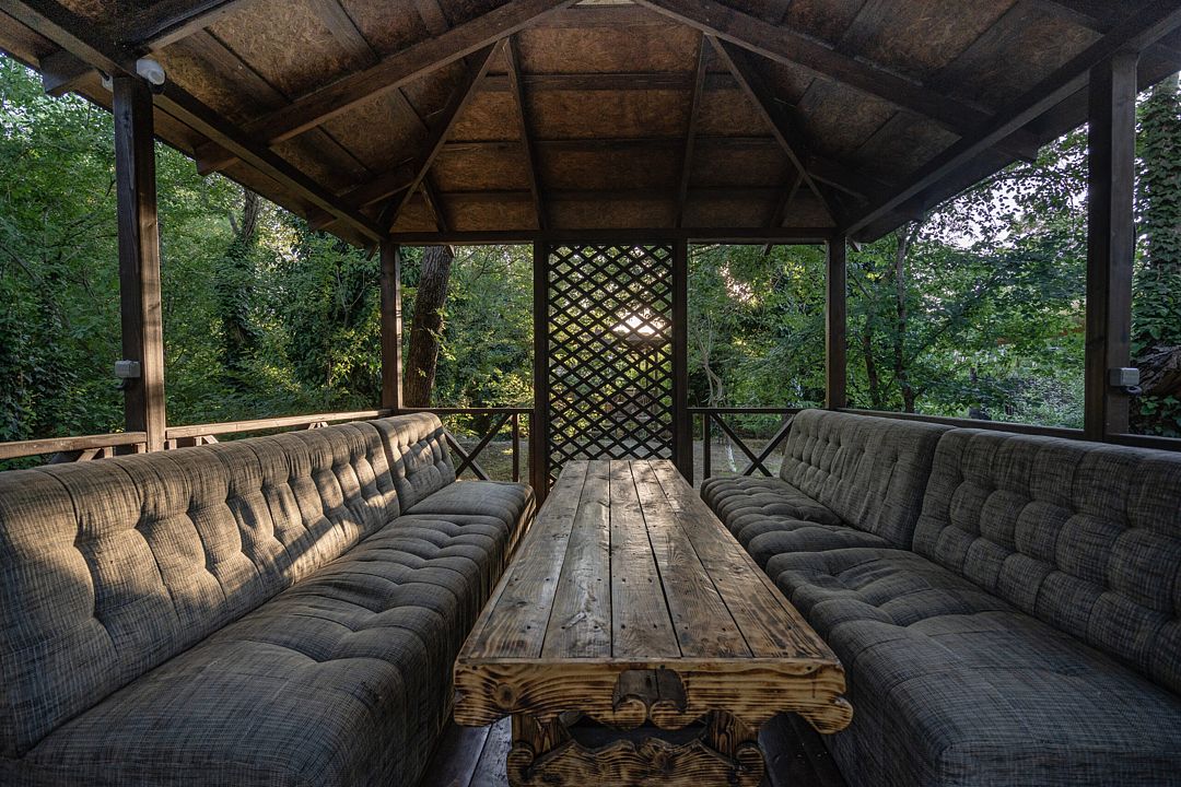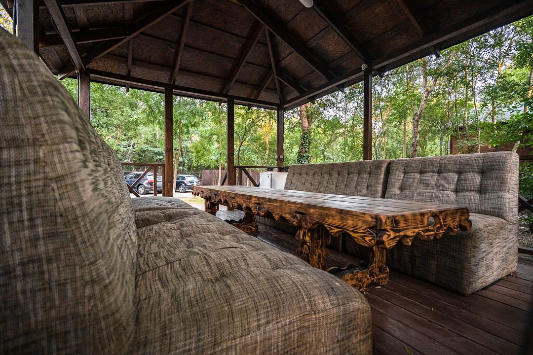 В каждой беседке вас ждет большой вместительный стол, удобные мягкие диваны, розетки для удобства, освещение и даже раковина с водой. Здесь вы сможете устроить отличный пикник или просто насладиться временем в кругу друзей или семьи.