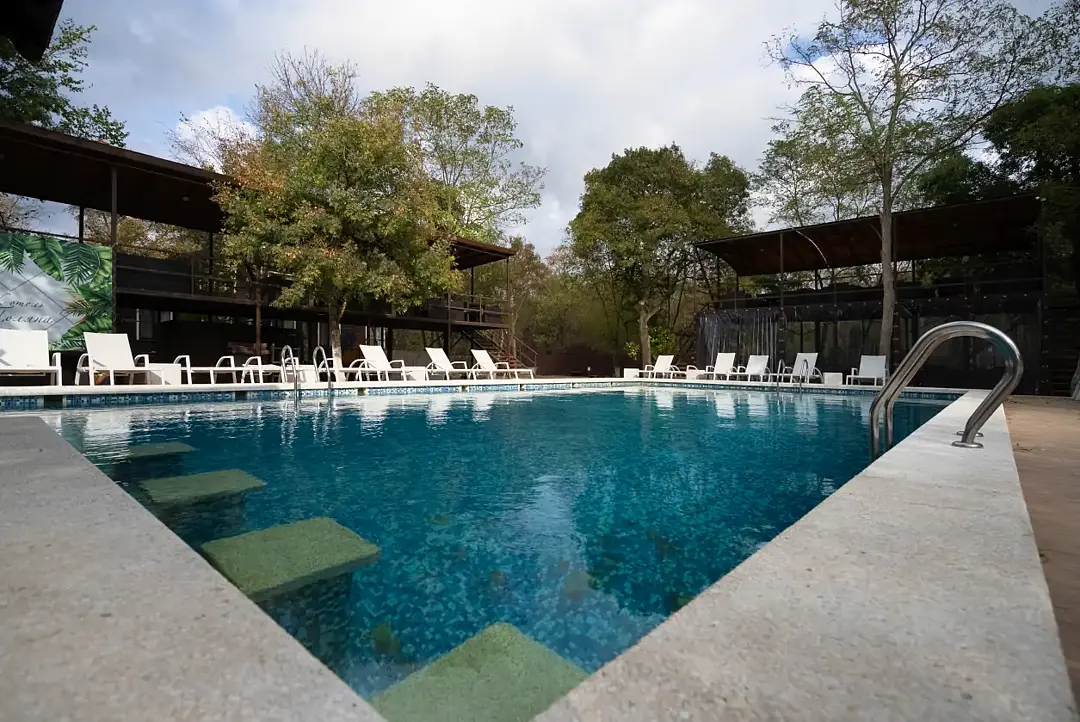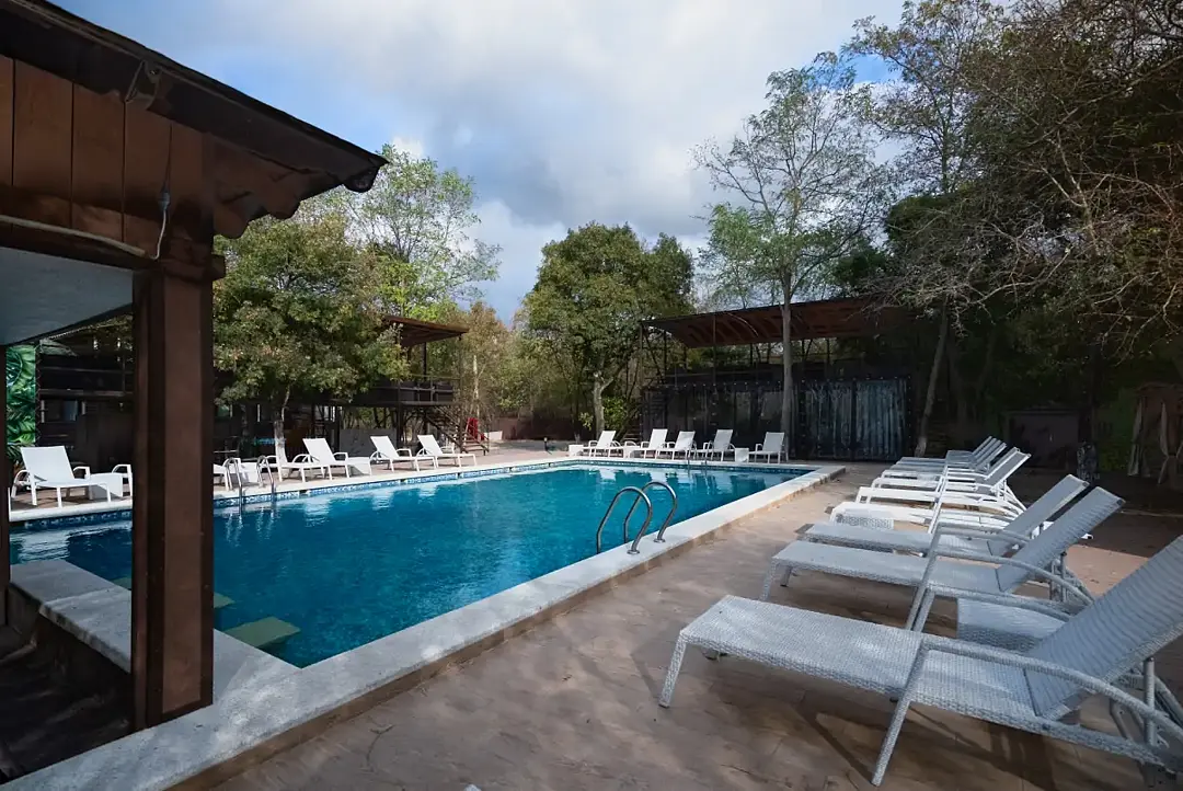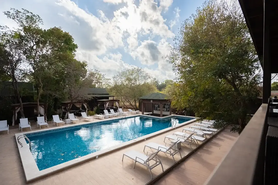 Тип бассейна: открытый бассейнРядом с бассейном: шезлонги, бар у бассейнаРазмеры: 16 x 8 мПлощадь: 128 м²Период работы: летний сезонБольшой сезонный бассейн с кафе.