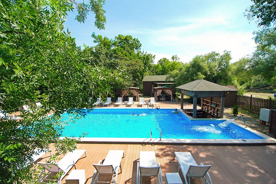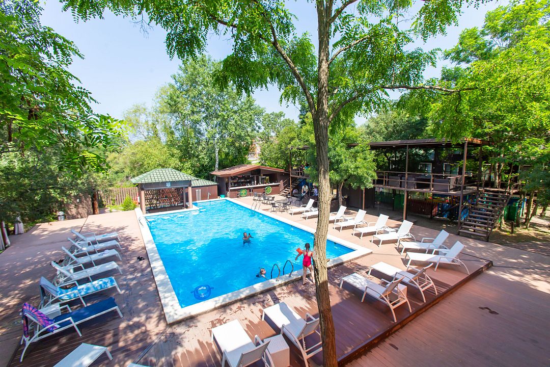 Большой сезонный бассейн с кафе.