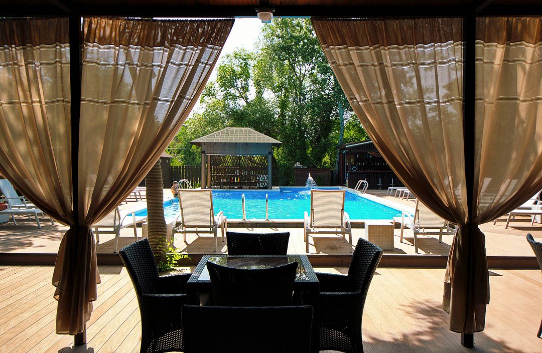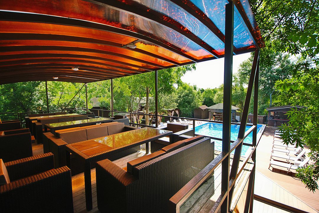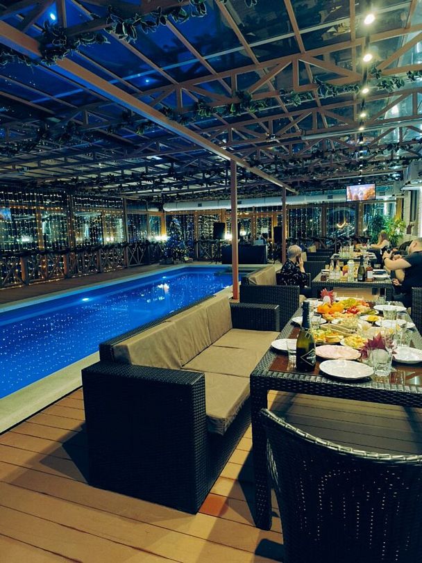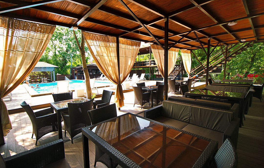 Летом кафе работает с 1 мая и до первого похолодания. Далее, в период межсезонья, к вашим услугам блюда по меню приготовят и сервируют для вас в уютном закрытом зале у открытого бассейна.