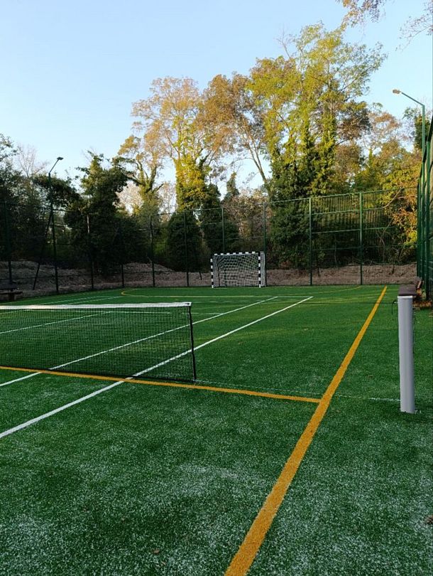 Уникальная спортивная площадка, идеально подходящая для тренировок и сборов в таких видах спорта, как мини-футбол и большой теннис.