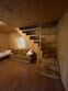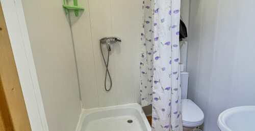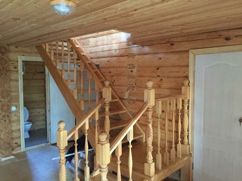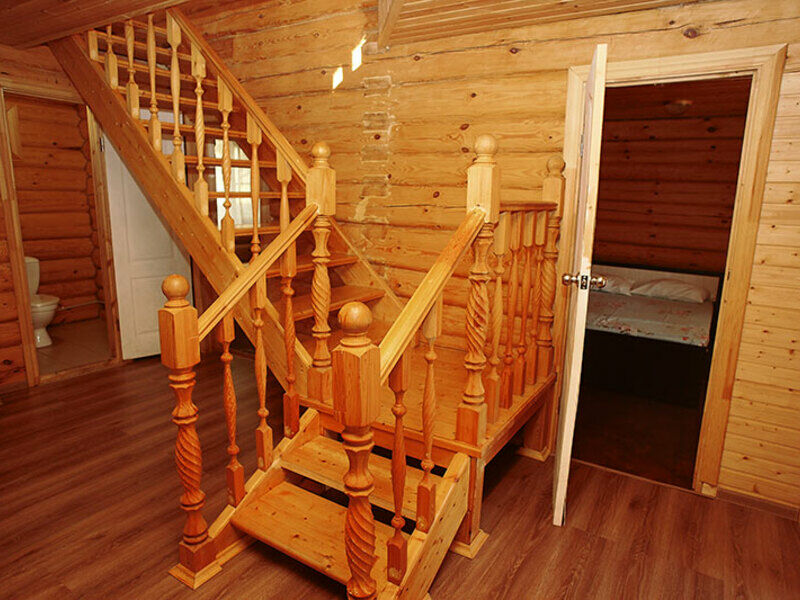 На первом этаже кухня, две жилые комнаты, две туалетных комнаты, душевые кабины, на втором этаже две жилые комнаты и просторный холл.
