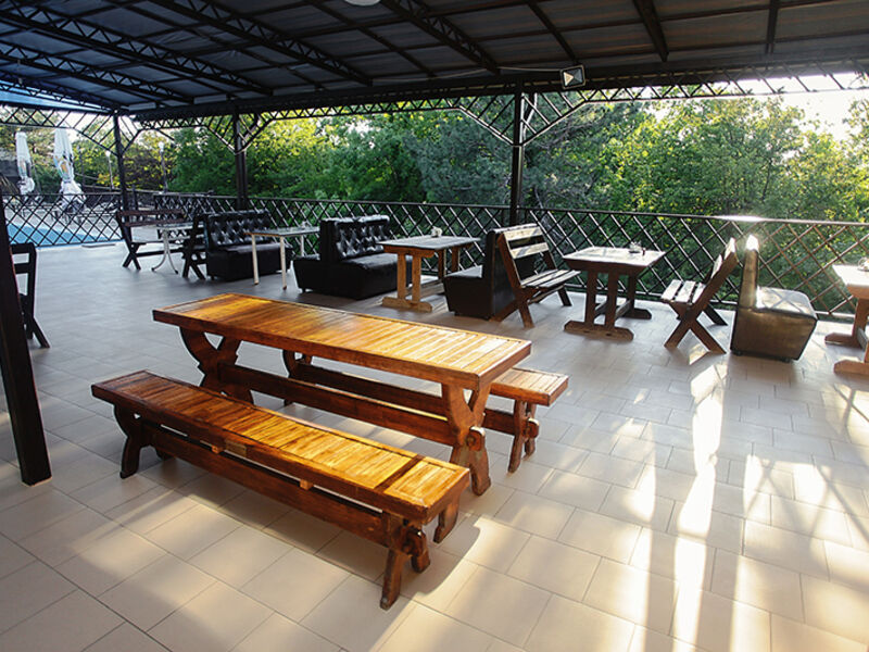 Инфраструктура базы отдыха включает в себя открытый бассейн с морской водой и зоной отдыха, беседки, мангал, бесплатную автомобильную парковку, столовую и бар у бассейна.