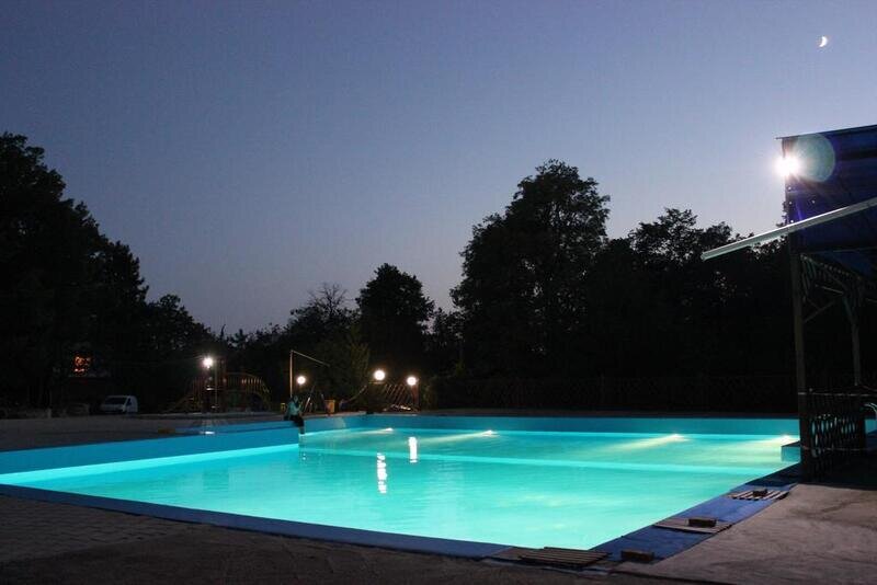 Короткий отпуск с друзьямиОчень хорошее местоНам посоветовали эту базу знакомые. И мы не разочаровались. Территория очень ухоженная. Домики чистые и удобные. Бассейн просто вне всяких похвал. Хоть и не очень большой, но не было тесно. Чистая морская и очень тёплая.
