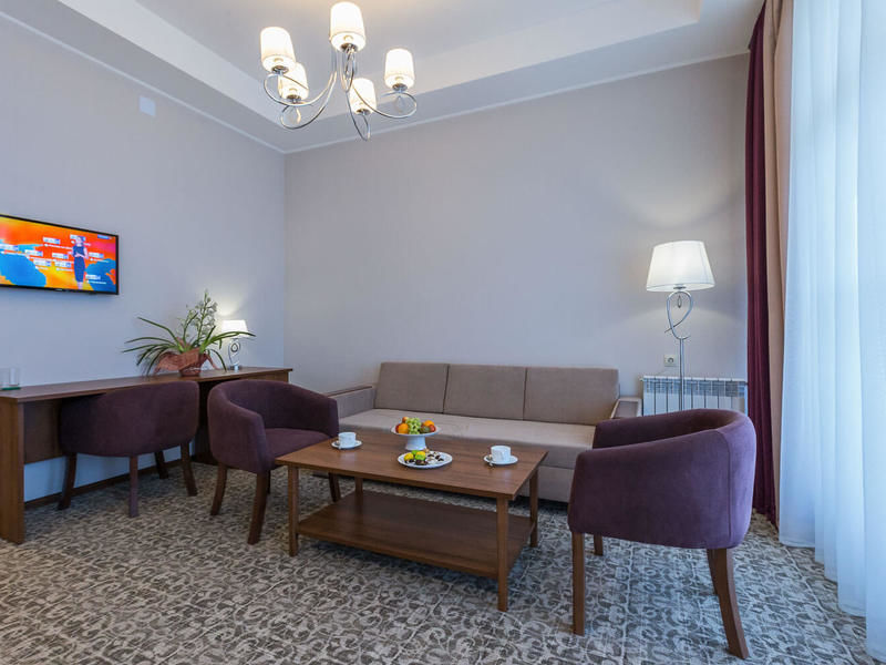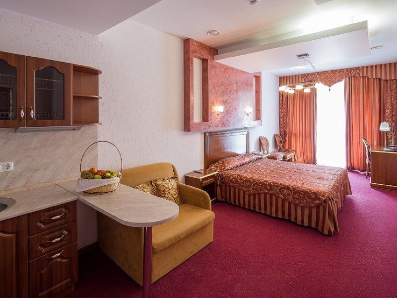 С/у, ванна, ТВ,К,мини-бар, двуспальная кровать, мини-кухня, мягкая мебель
