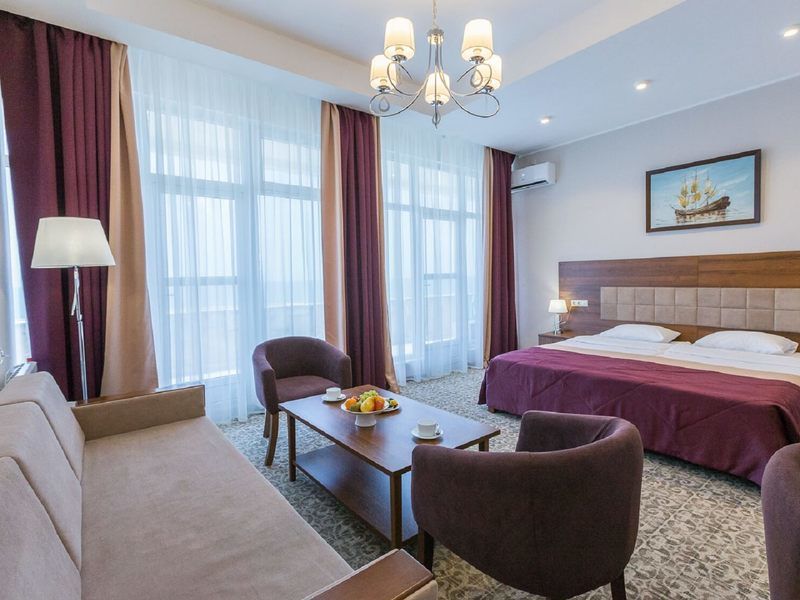 Гостиничный комплекс «Парус» оснащен комфортабельными номерами с уютной обстановкой, отличной бытовой техникой, мебелью и достойным сервисом. Трехразовое питание в стиле «шведский стол» выглядит довольно обыденно, но в ГК «Парус» его разнообразит меню местного лобби-бара, ресторана и кафе. На пляже для отдыхающих есть все необходимое – от лежаков до кафе с освежающими напитками.