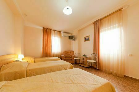 Внимание детей и их родителей сразу же привлекает необычной формы бассейн во дворе - это настоящий Фрегат, затерявшийся здесь во времени и пространстве. Это прекрасное место для игр и буйства фантазии в самые жаркие часы дня. Ну а продолжить можно на прекрасно обустроенной детской игровой площадке неподалеку. В кафе гостевого дома организовано питание по системе «шведский стол» . Ну а сама территория гостевого дома скорее всего напоминает парк с прекрасным дизайном, статуями и укромными местечками для отдыха.