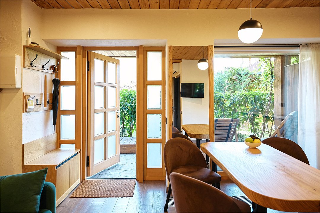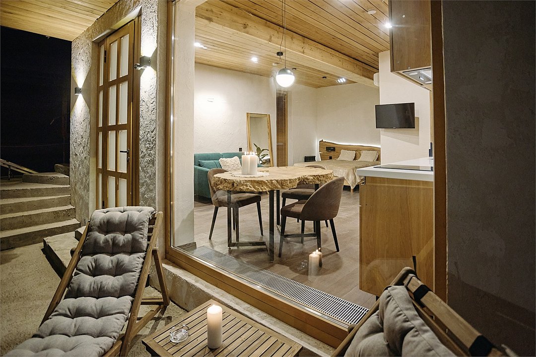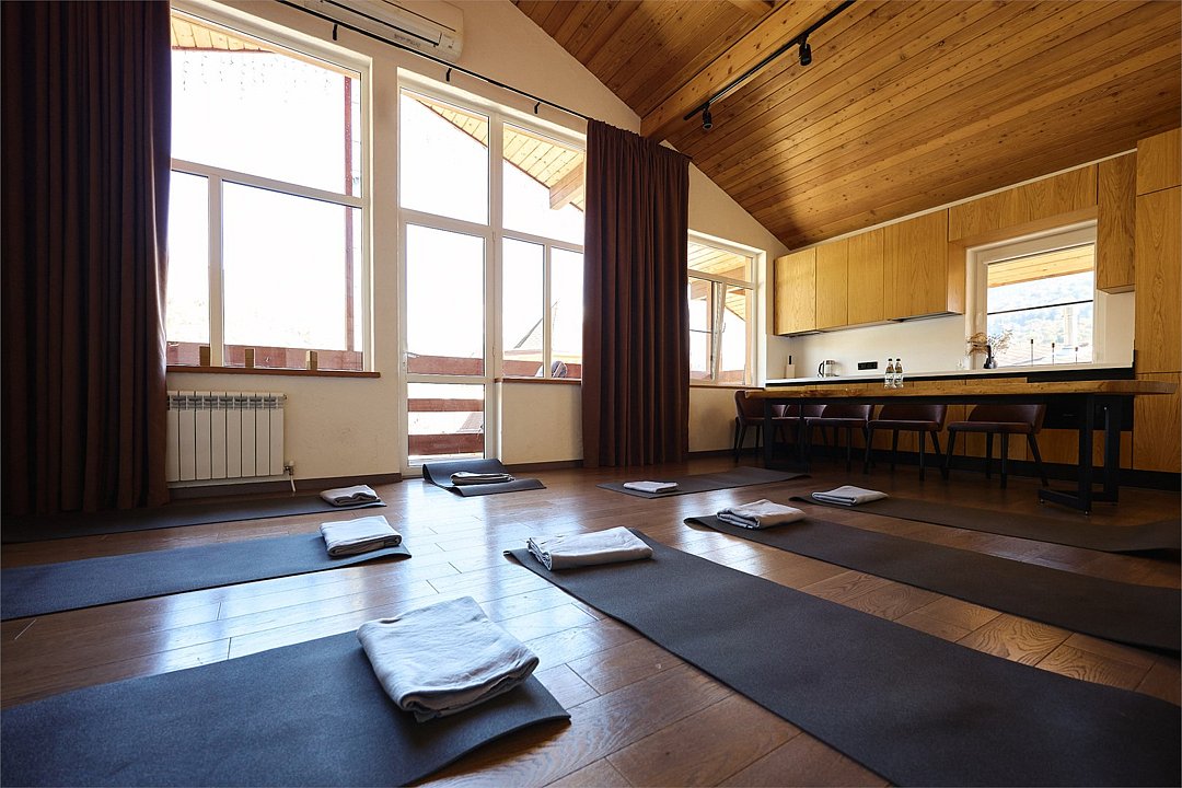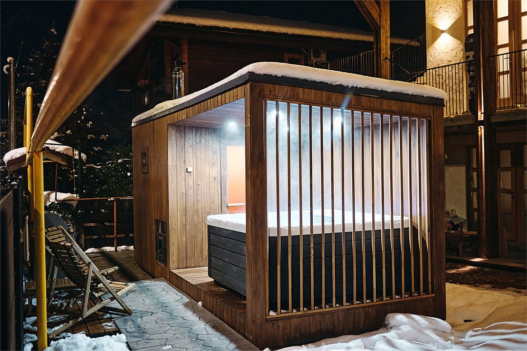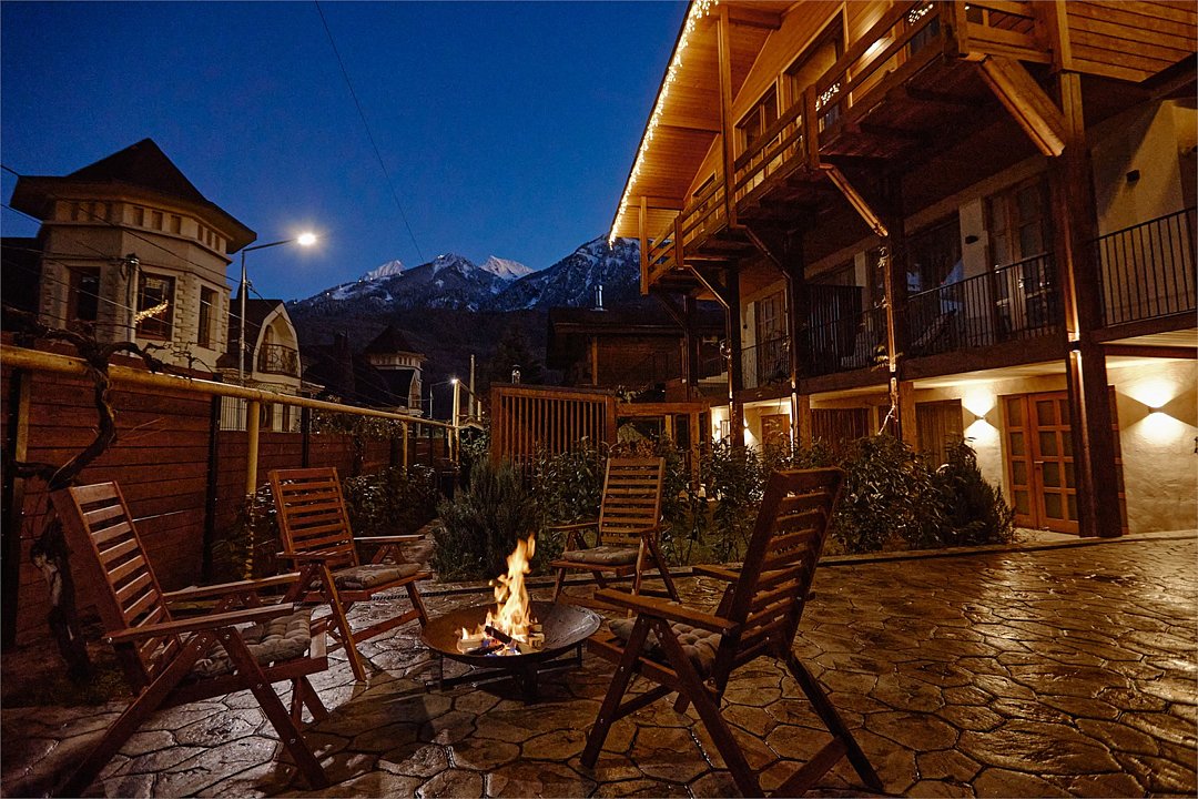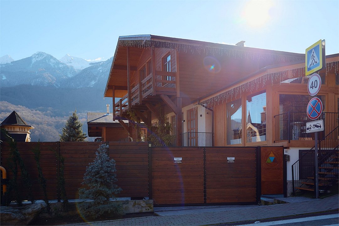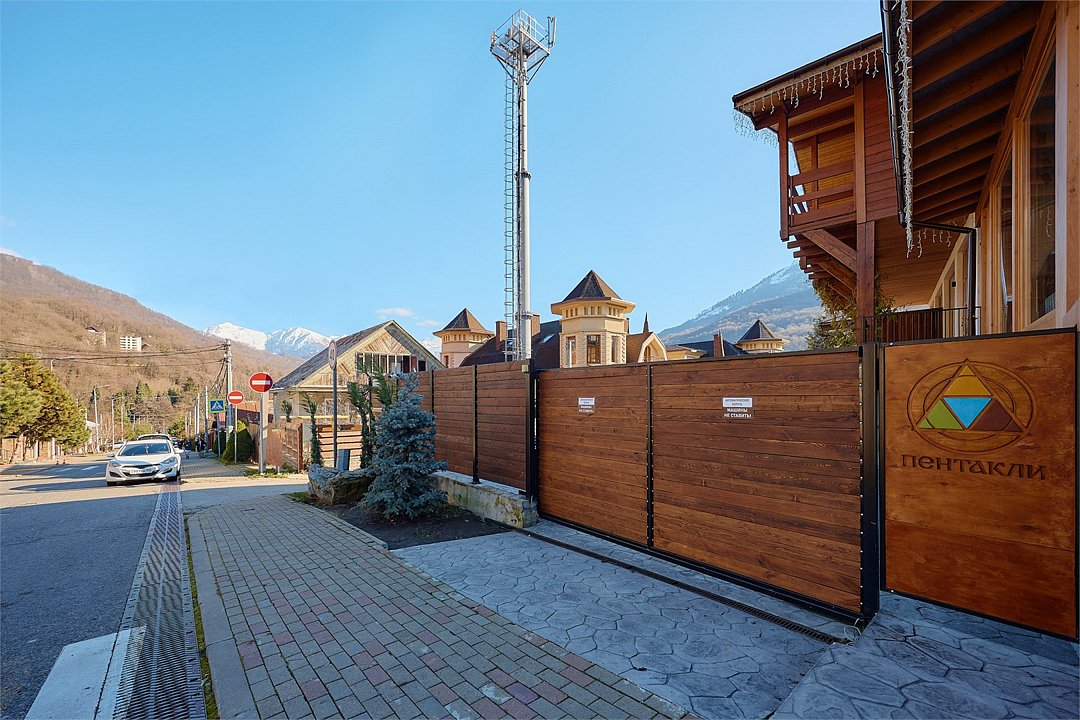 Гостевой дом Пентакли находится в горах Красной поляны, среди развитой инфраструктуры посёлка, рядом с подъемниками и прокатом горнолыжного снаряжения. Пентакли предоставляет разнообразные варианты проживания в отдельных апартаментах с 1 спальней и кухней-студией, с 2 спальнями и кухней-гостиной, а также возможность арендовать посуточно новый Гостевой дом целиком - для большой компании друзей или проведения мероприятий. Работаем круглогодично. Предоставляем место для парковки. На уютной территории Пентакли есть мангальная зона и территория для отдыха. Большой популярностью пользутся кедровая баня на дровах и джакузи на открытом воздухе. Гостеприимный персонал поможет решить бытовые вопросы и интересно организовать досуг.