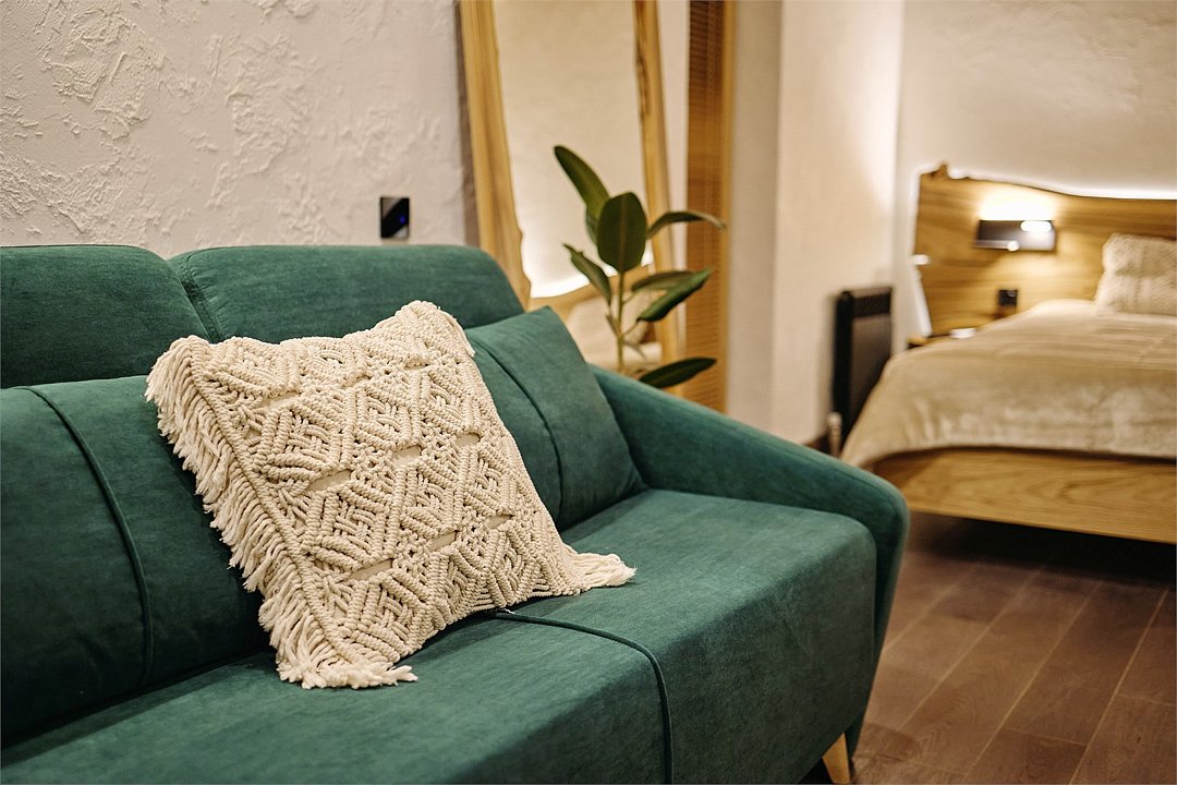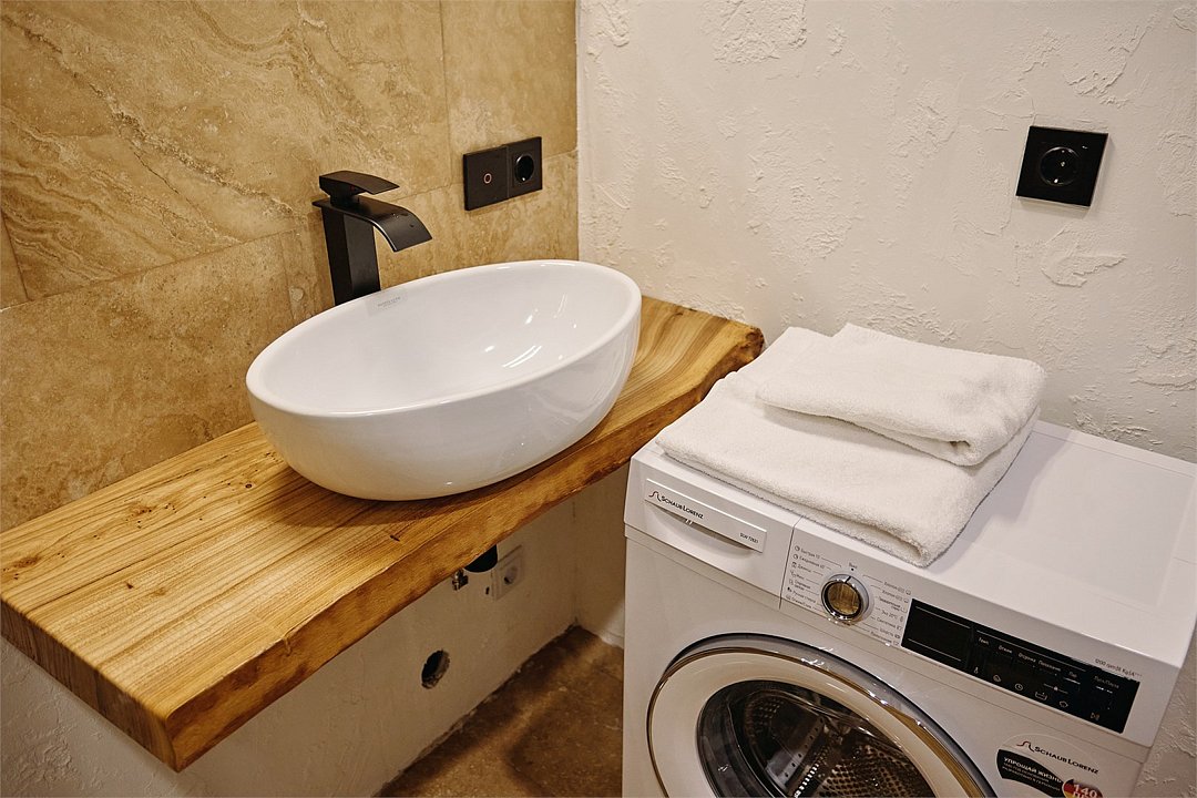Апартамент на 1 этаже с удобной кроватью и раскладывающимся диваном, а также с современной оборудованной кухней. В ванной комнате душевая кабина и стиральная машина. Номер наполнен качественной мебелью. Здание построено с использованием современных отделочных материаловУслуги и удобства