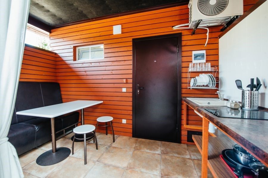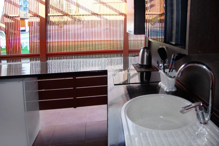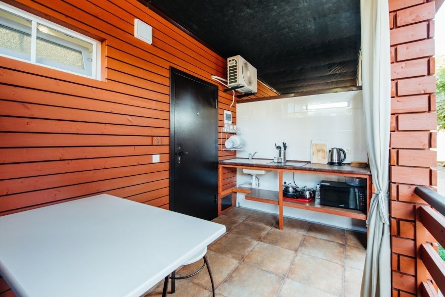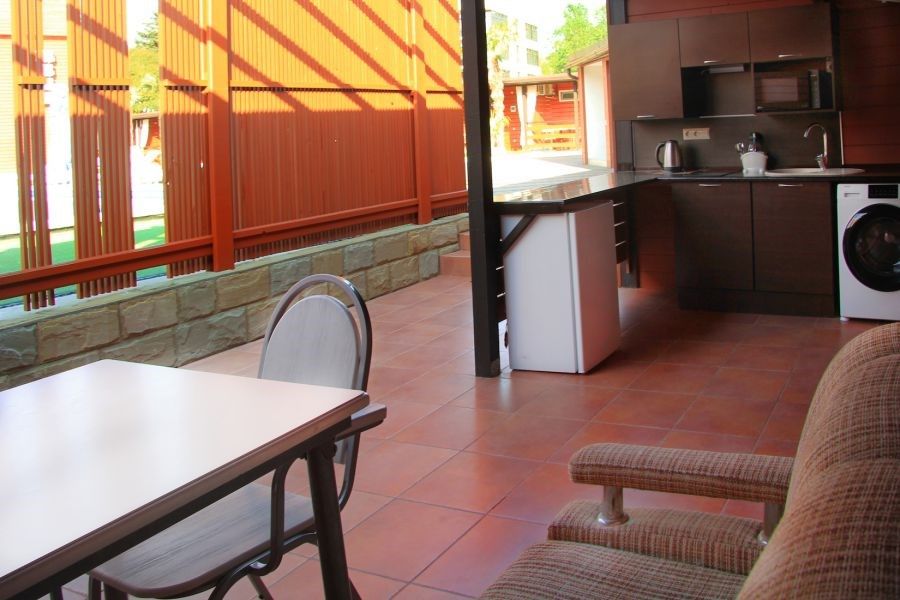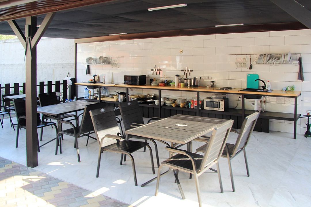 На территории отеля оборудованная летняя кухня, барбекю зона. Имеются апартаменты с мини-кухней.