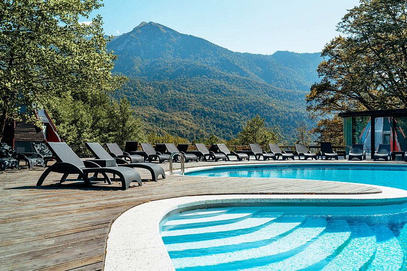 Окунитесь в мир релаксации, воспользовавшись открытым бассейном, сауной и массажным кабинетом. Красивейшие виды на окрестности подарят вам ощущение спокойствия и умиротворения. Погрузитесь в атмосферу единения с природой, найдите внутренний баланс и наполнитесь энергией.