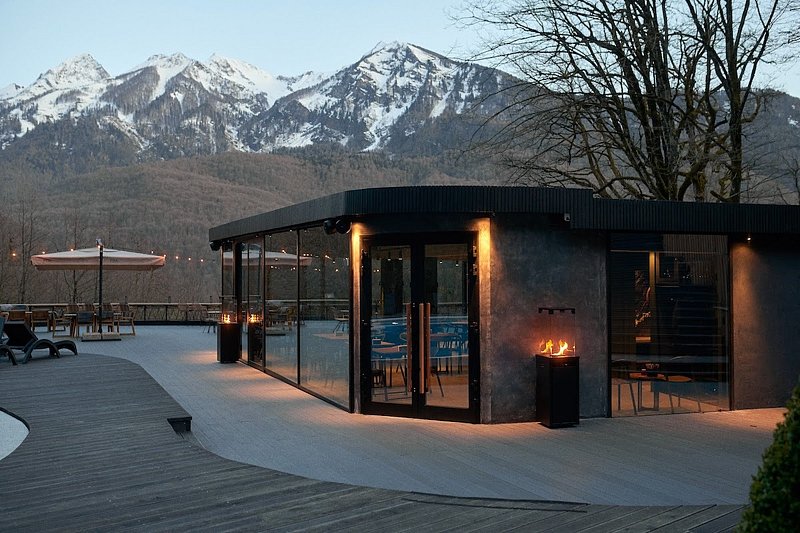 Отель находится всего в 1 км от центра Красной Поляны, в непосредственной близости от популярных горнолыжных курортов: Красная Поляна, Роза Хутор и гора Мамдзышха.