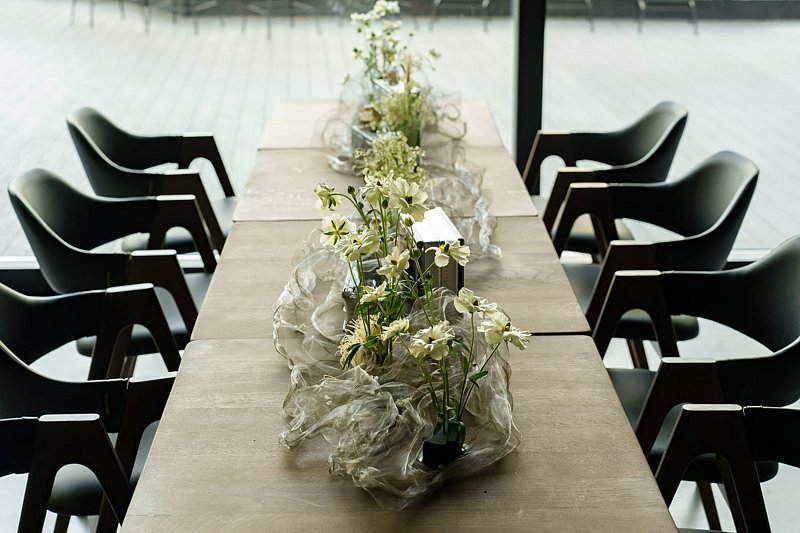 Возможно размещение до 50 человек, полное закрытие отеля под торжество и пятизвездочный сервис, который позволит вам расслабиться и окунуться в магию момента. Сдержанные и лаконичные оттенки площадки позволяют стилизовать ее под любую задумку: цветы, шары, ленты, необычные дизайнерские решения. На случай, если вам понадобится трансляция видео, фото или других медиаматериалов, есть проектор и экран, который находится в домике с затемненным куполом.