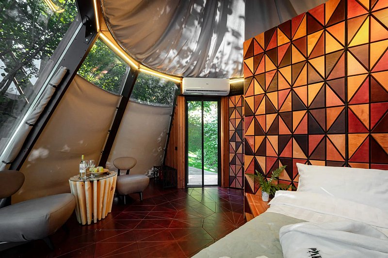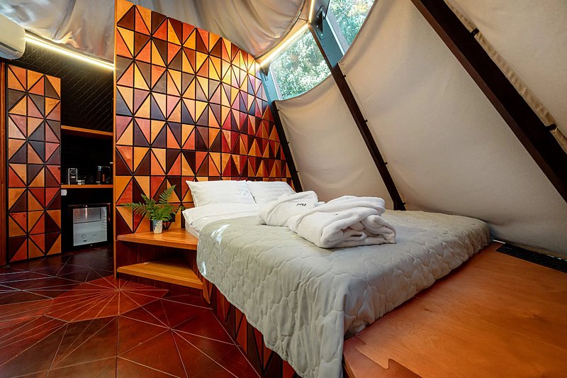 В вашем распоряжении уютные типи с собственной ванной комнатой и мини-баром для отдыха после активного дня. Бесплатный Wi-Fi позволит вам оставаться на связи.