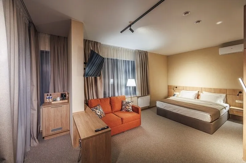 Современные номера оборудованы спальными местами, ванной комнатой, качественной мебелью, есть тапочки, фен, кондиционер, электронные замки, телефонная связь с ресепшн. Для комфортного подъема на верхние этажи в отеле предусмотрен лифт.