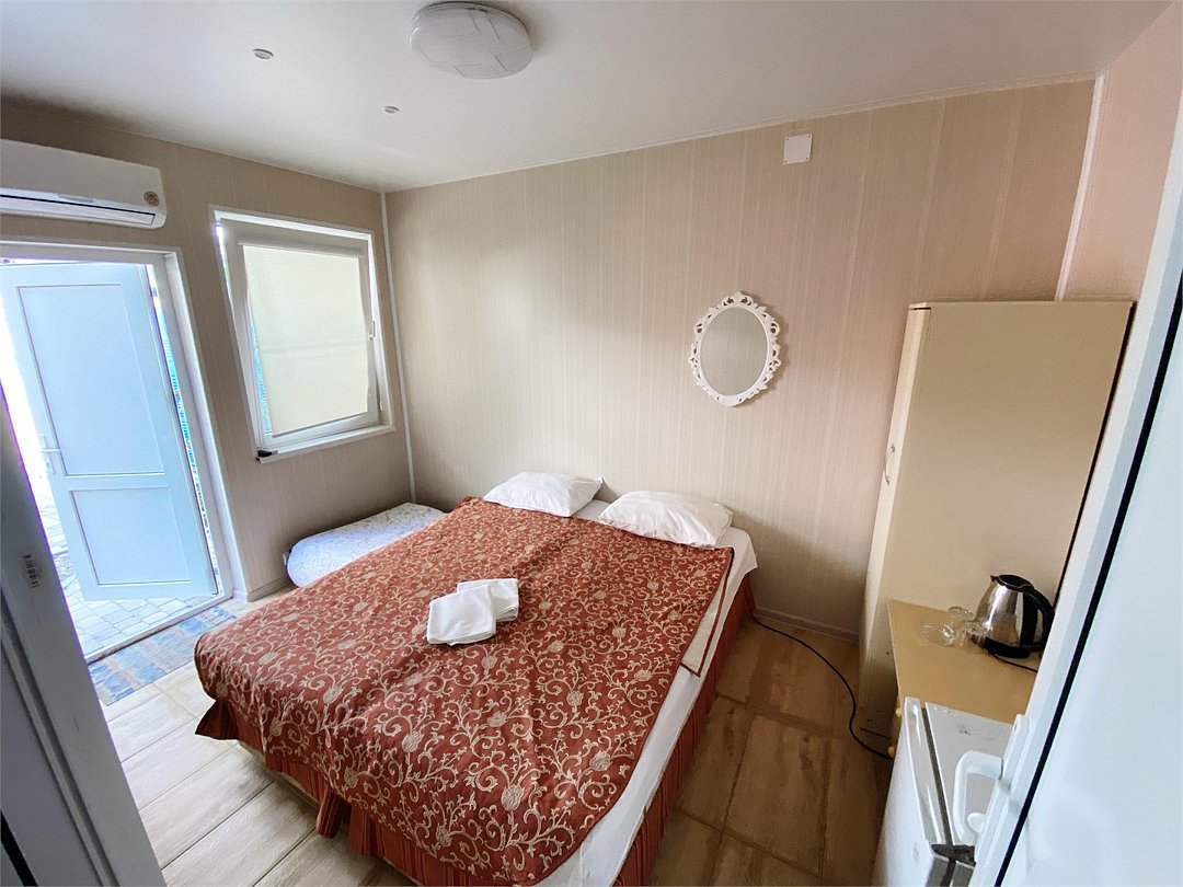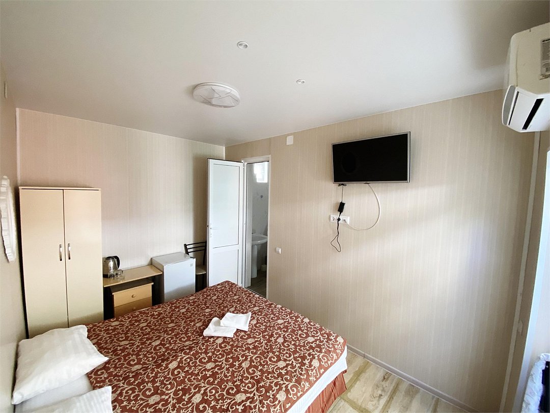 Отдельный двухместный номер во дворике, на территории Пансионата, с двумя спальными местами, с возможностью размещения одного гостя, или двух, в номере телевизор кондиционер холодильник, чайник фен, душ туалет умывальник. (Цена указана за одного гостя с питанием завтрак и ужин)Услуги и удобства