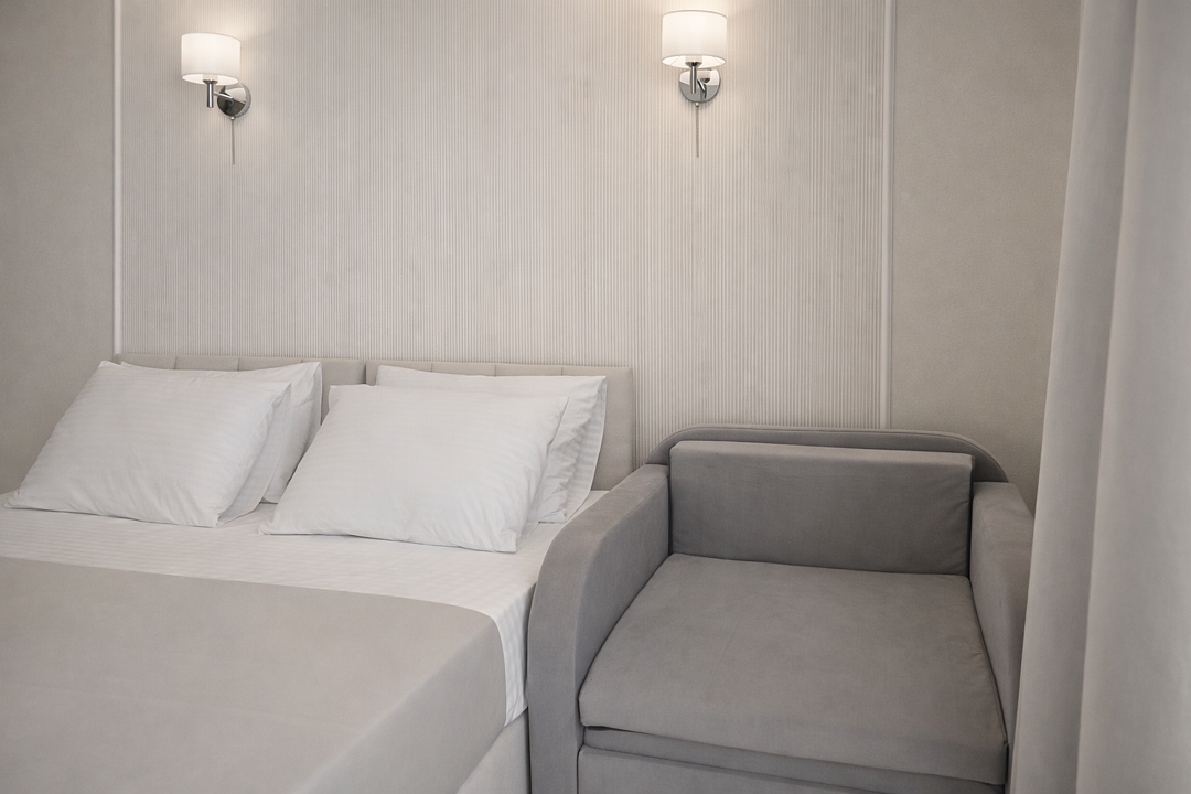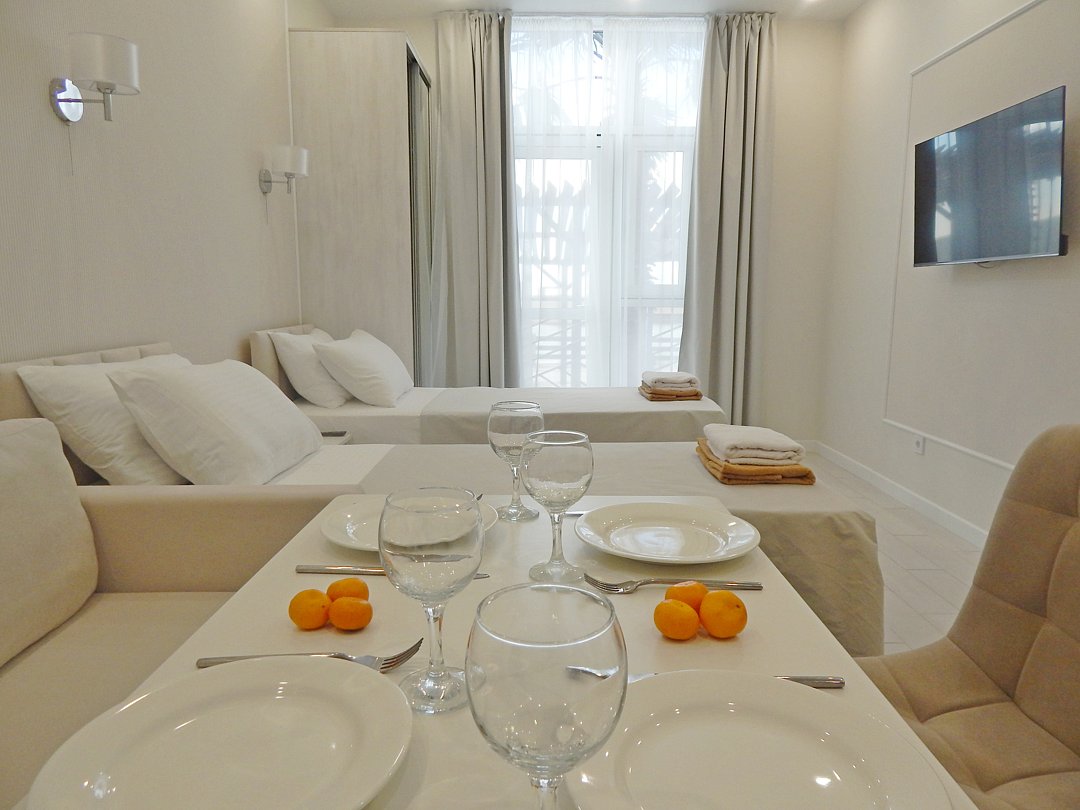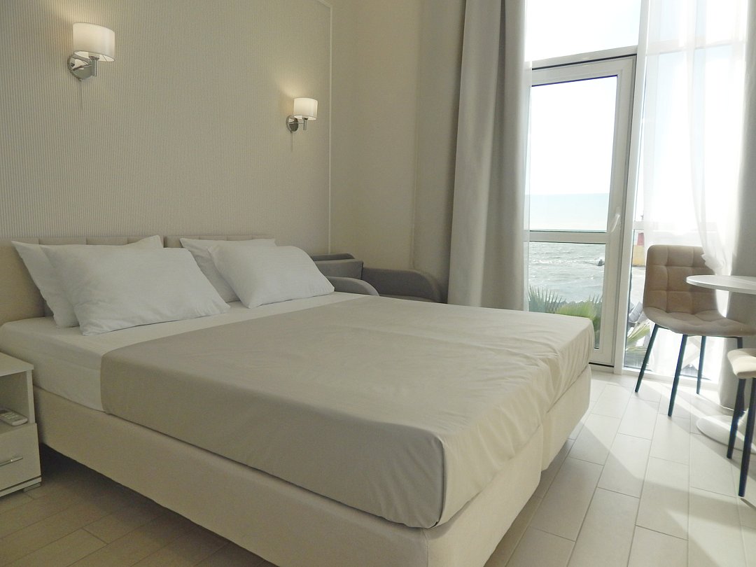 Супериор — студия с современным дизайном, состоящий из кухни и спальни. Комфортабельный номер с видом на море и прямым выходом в зону отдыха на первой береговой линии не оставит вас равнодушным.