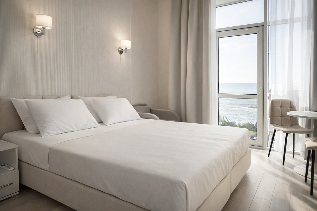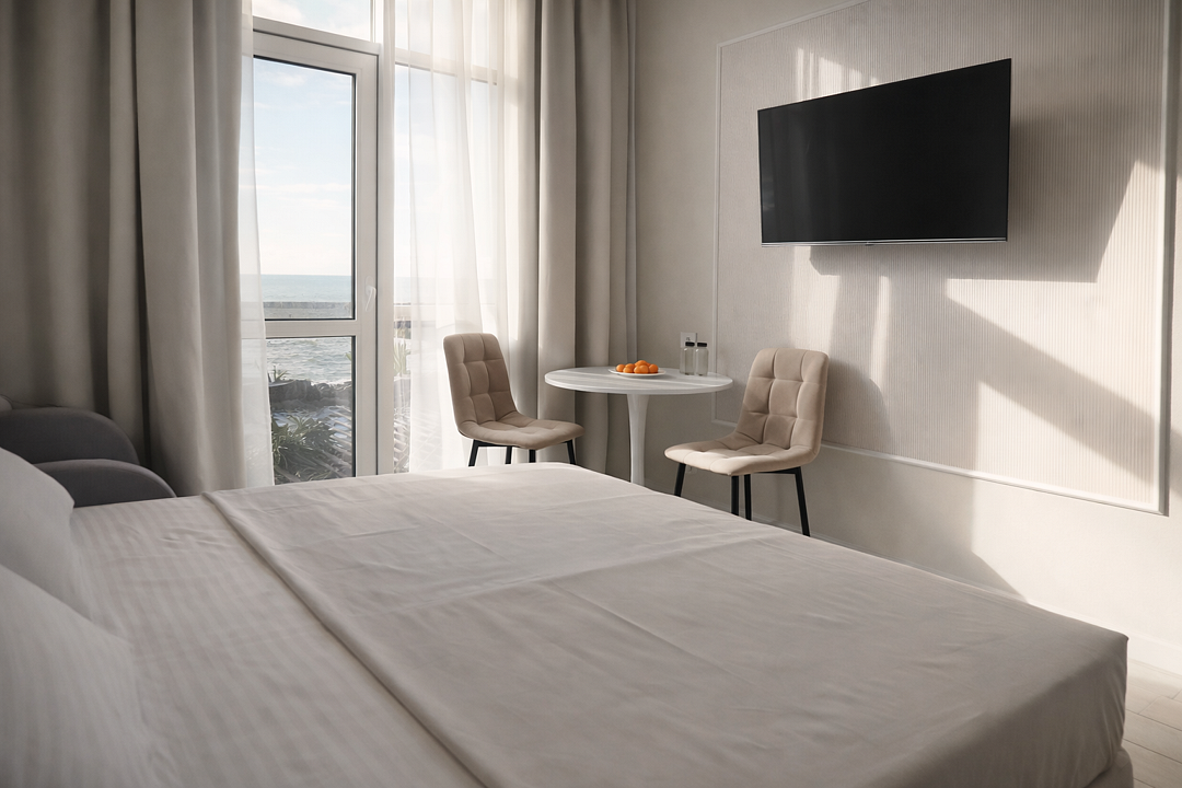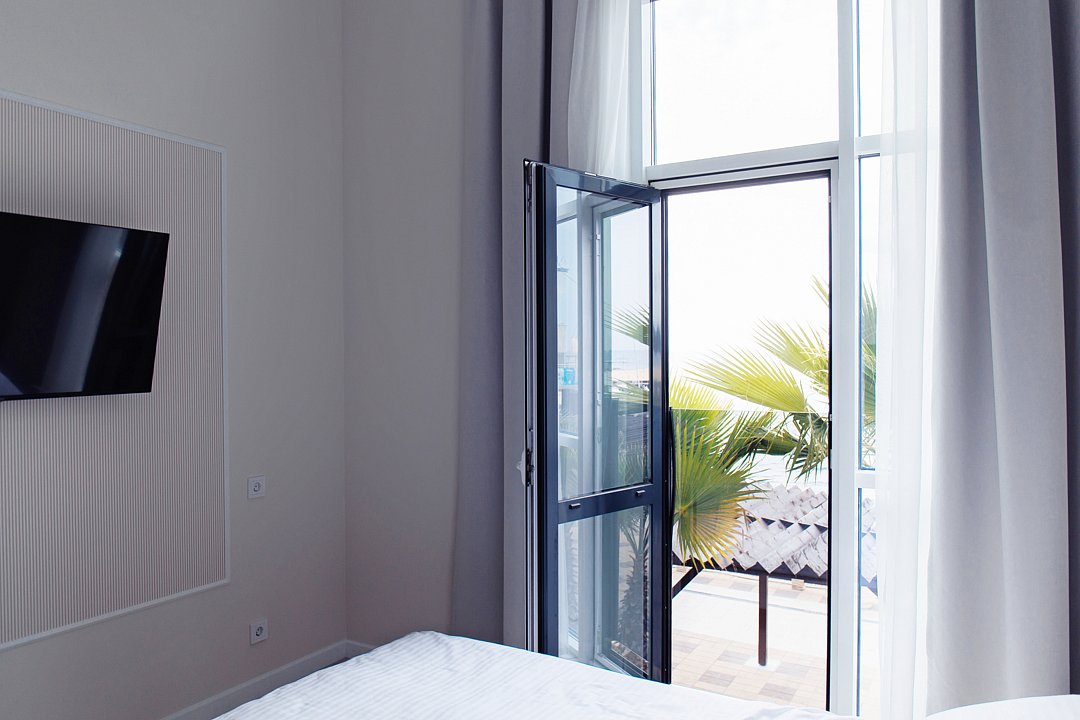 Стандарт с видом на море, панорамными французскими окнами-балконами в пол.