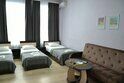 В номере установлены пять односпальных кроватей для отдыха и проживания от 1 до 5 человек, а также в номере есть шкаф, прикроватные тумбочки, журнальный столик, телевизор, кондиционер, зеркало, душ, туалет, халат, тапочки, туалетно-косметические принадлежности (зубной набор, гель для душа, шампунь) чайник, стаканы, чай, сахар.