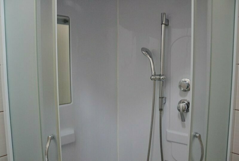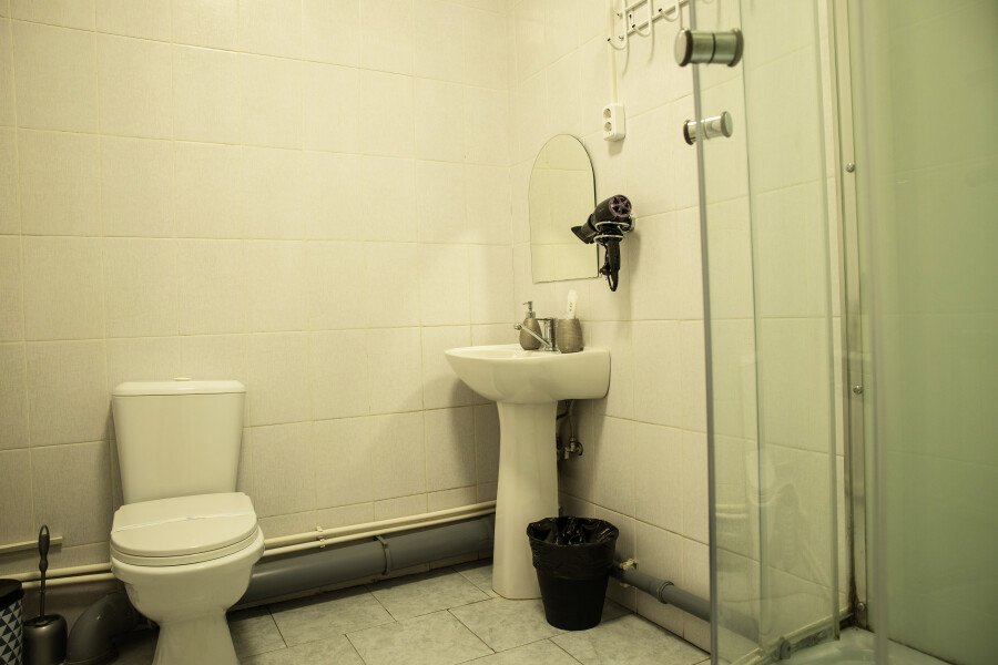 Душ, туалет, утюг, фен и микроволновка общие расположен в холле.