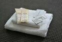 В номере холодильник, кондиционер в каждой комнате, две односпальные кровати и раскладной диван, в санузле фен, душевые принадлежности, полотенца, халаты, тапочки.