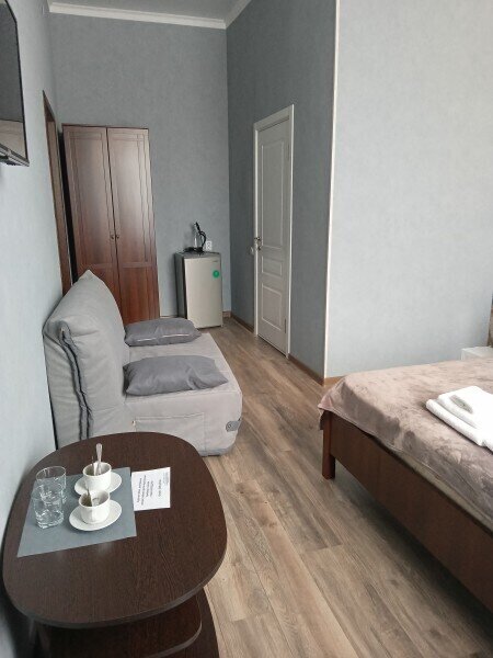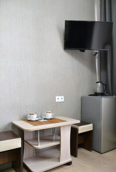 В номере установлены двуспальная, односпальная кровать и/или диван, для отдыха и проживания от 1 до 3 человек, а также в номере есть холодильник, шкаф, прикроватные тумбочки, журнальный столик, телевизор, кондиционер, зеркало, душ, туалет, халат, тапочки, туалетно-косметические принадлежности (зубной набор, гель для душа, шампунь), электрочайник, кружки, чай, сахар.