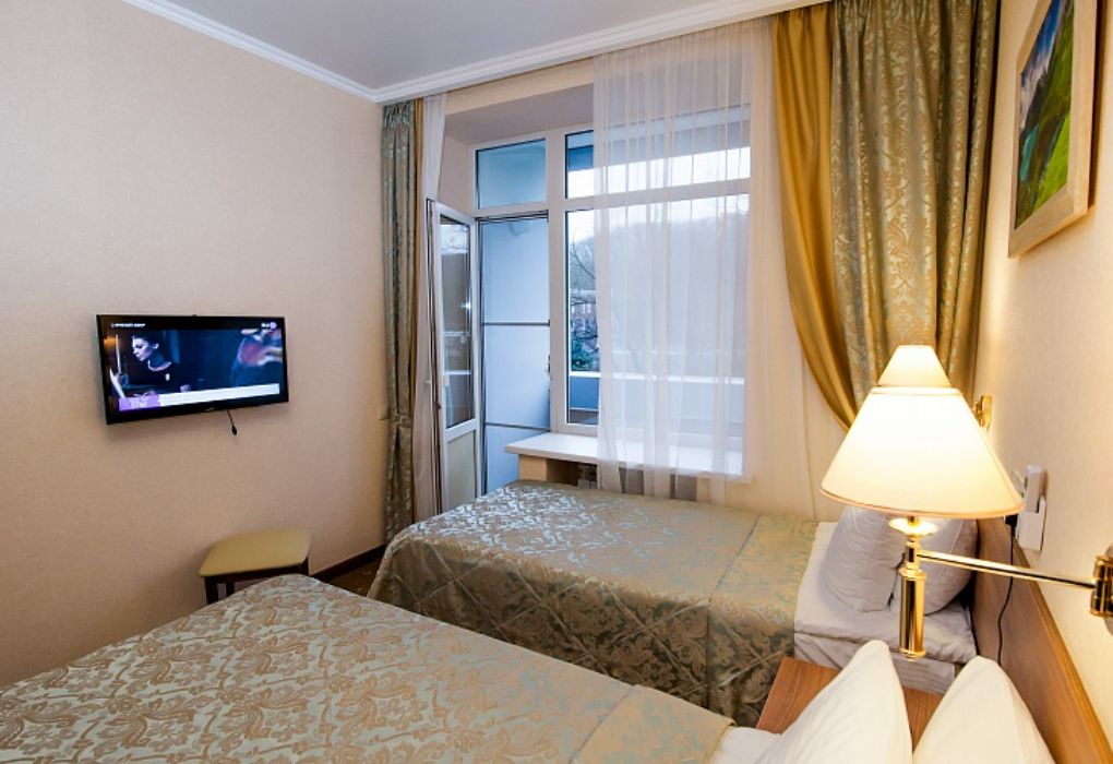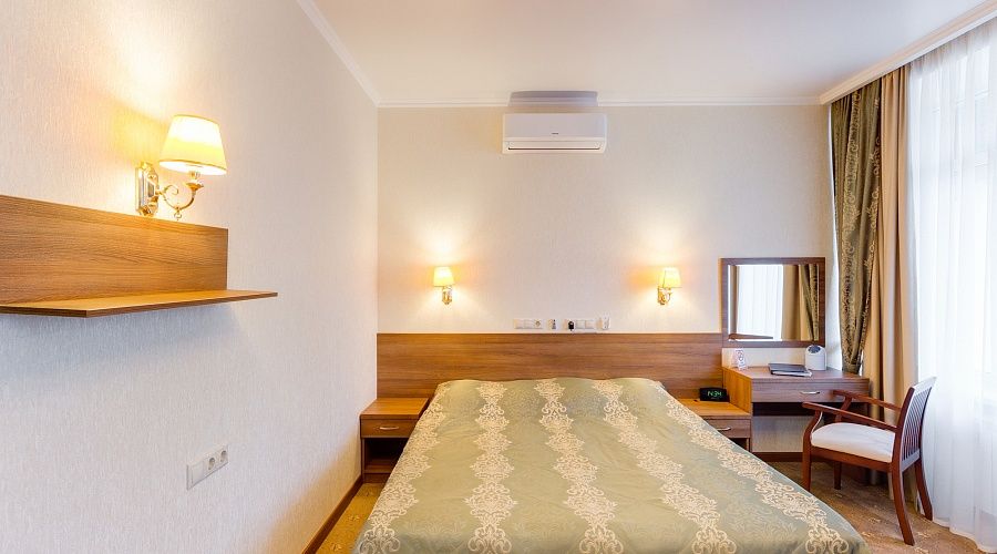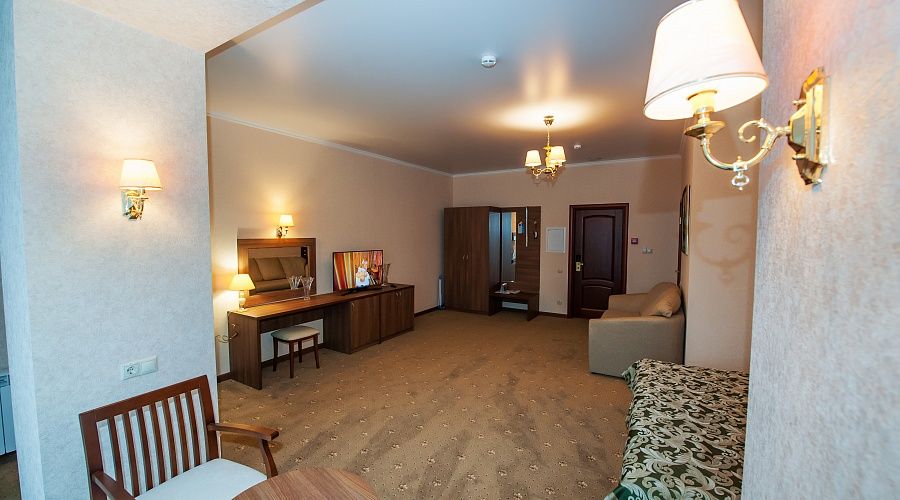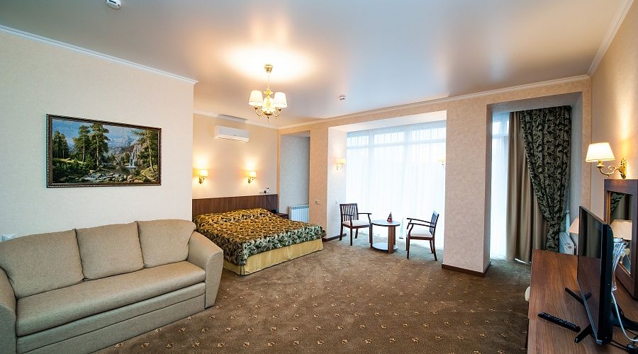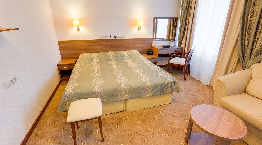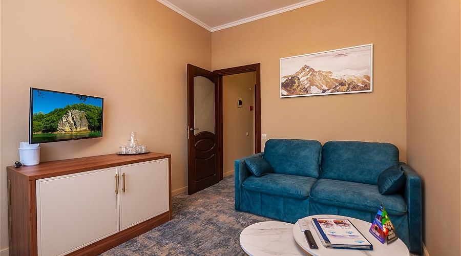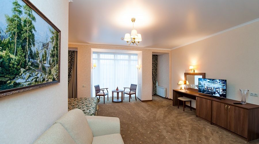 Номер высшей категории, оформлен в классическом интерьере, идеально подходит для семейных пар, гостей с детьми. Номера данной категории расположены на 3, 5, 6 и 7 этажах здания, имеют живописный вид из окон на горы и тихий внутренний двор санатория. S 36 кв. м.
