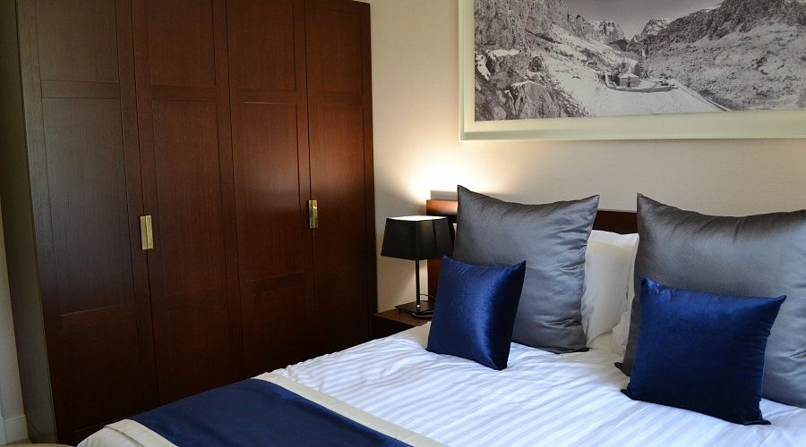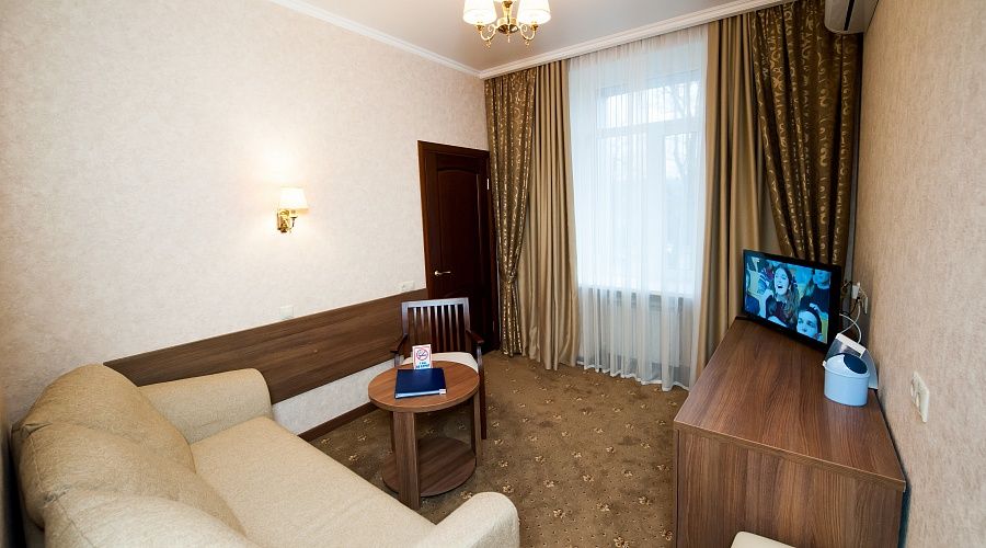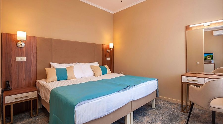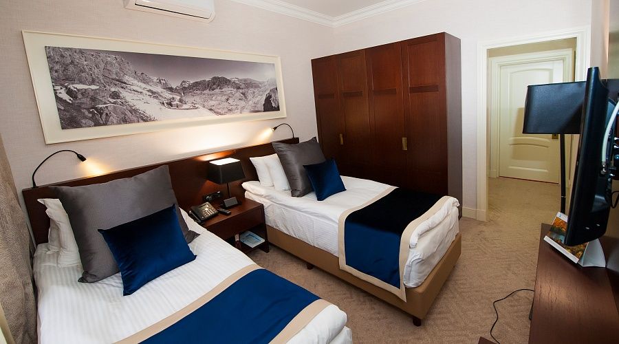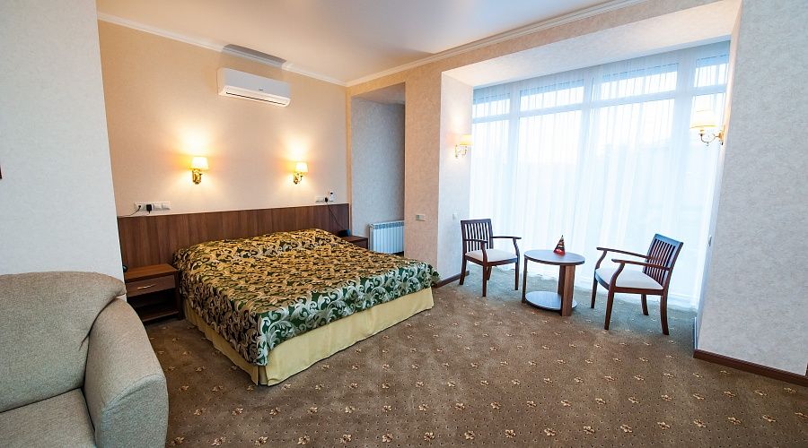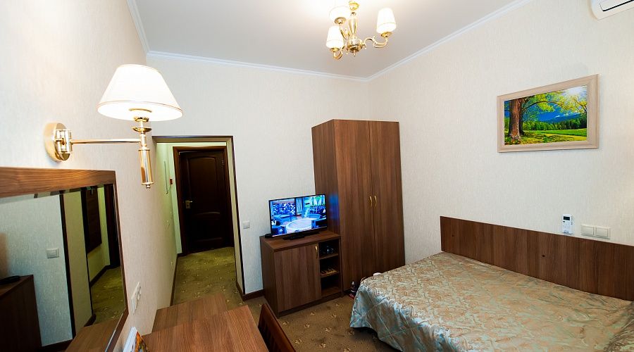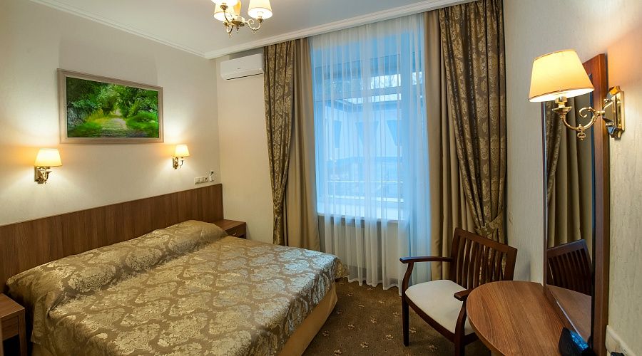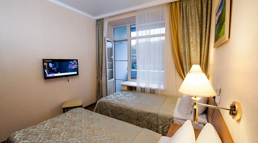 Номер высшей категории, оформлен в классическом интерьере, идеально подходит для семейных пар, гостей с детьми. Номера данной категории расположены на 3, 5, 6 и 7 этажах здания, имеют живописный вид из окон на горы и тихий внутренний двор санатория. S 36 кв. м.