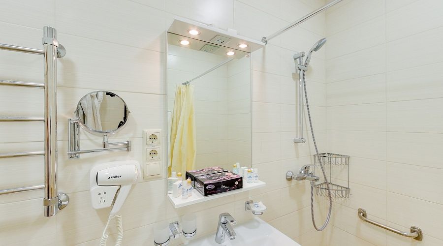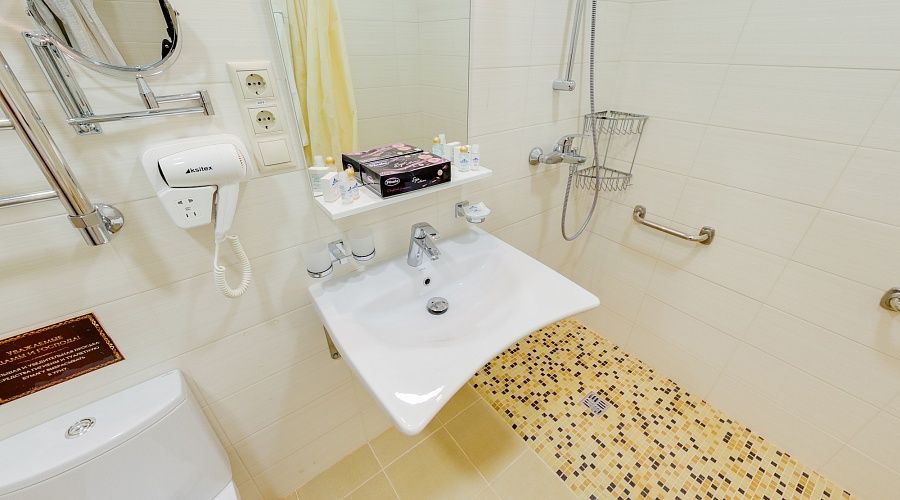 Уютный двухместный номер «Стандарт» улучшенной комфортности полностью адаптирован для проживания маломобильных групп населения (лица с ограниченными физическими возможностями передвижения). Специально спроектированный номер оснащен всем необходимым: удобная ванная комната, дополнительные поручни, расширенные дверные проемы.