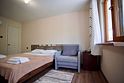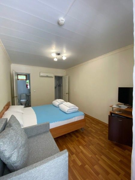 В номере: двуспальная кровать, доп. место — раскладной диван, тумбочки, TV, кондиционер, санузел.