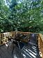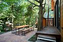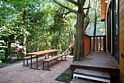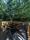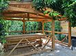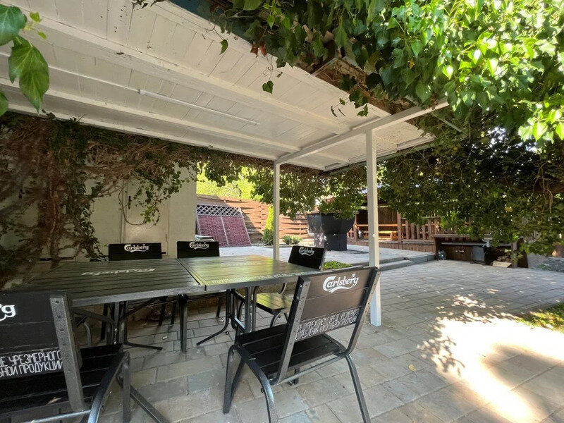 Выход на террасу со столиками и стульями, есть мангальная зона.