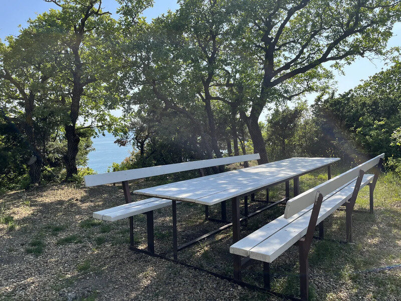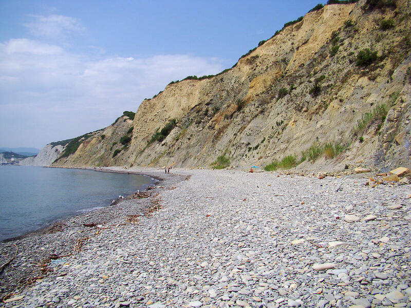 От базы Прибой к морю со скалы ведет железная лестница, насчитывающая 199 ступени, имеются пролеты и места для отдыха, оборудованные раздевалками. Пляж галечный, лагуна общей протяженностью 2 км.