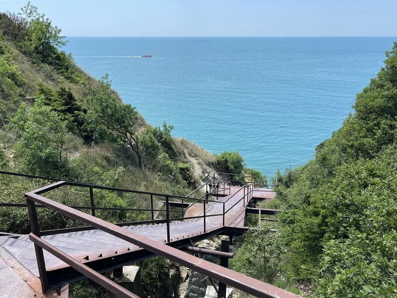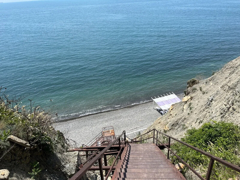 НедостаткиОчень крутая на подъеме лестница к морю!